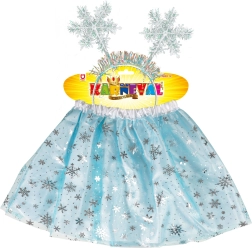 Šis nuostabus vaikų kostiumas mėlynos spalvos su sniego motyvais yra puikus pasirinkimas šventėms ir persirengimams. Jis sukurtas taip, kad būtų patogus dėvėti ir puikiai atrodytų ant kiekvienos mergaitės.