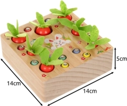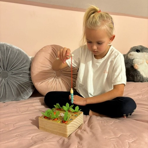 Vadovaujantis Montessori principais, vaikai gali pasinerti į kūrybingo sodininko vaidmenį ir linksmai mokytis, kaip sodinti ir nuimti morkų derlių ar žaisti su magnetine meškere. Šis produktas idealiai tinka vaikų vaizduotei ir kūrybiškumui lavinti.