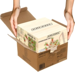 Medinis žaislas KRUZZEL 2 viename suteikia mokymosi ir žaidimo džiaugsmą su spalvingu sodo dizainu. Vaikams patiks mėgdžioti sodininkus žaidžiant su magnetiniais kirmėliukais ir dedant morkas į tinkamas angas. Žaidimas padeda atpažinti formas ir spalvas, taip lavindamas jutiminius įgūdžius.
