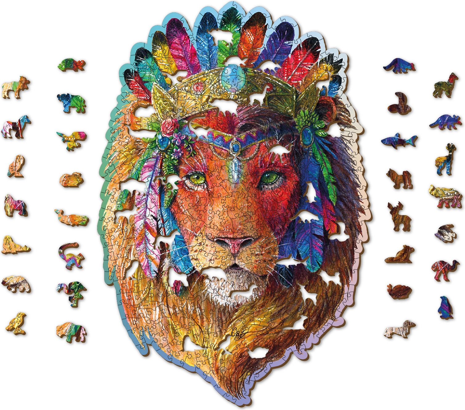 Atraminkite dėlionių magiją su medine dėlione WOODEN CITY Mistinis liūtas. Dėl lazeriu išpjautų detalių, iš kurių daugelis turi unikalias gyvūnų, pastatų ir daiktų formas, dėliojimas tampa ne tik smagus, bet ir sudėtingesnis bei kūrybiškesnis. Dėlionė yra dvipusė 2 viename – iš vienos pusės paveikslėlis, iš kitos pasikartojantis raštas dėliojimui pagal formas. Išsiskiria lygiais kraštais be atplaišų, yra eko draugiška ir be plastiko ir puikiai tinka kaip dovana bet kokia proga.