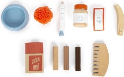 Praktiškas krepšys su vėdinimo tinkleliu ir laikymo kišenėmis padeda visus priedus laikyti tvarkingai kartu. Kokybiška mediena, plastikas ir tekstilė užtikrina ilgaamžiškumą ir saugų žaidimą. Rinkinyje yra ir spyruoklinis švirkštas, pincetas, tvarstis bei kiti priedai realistiškai priežiūrai.