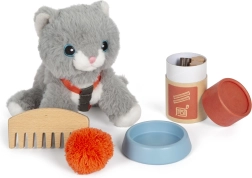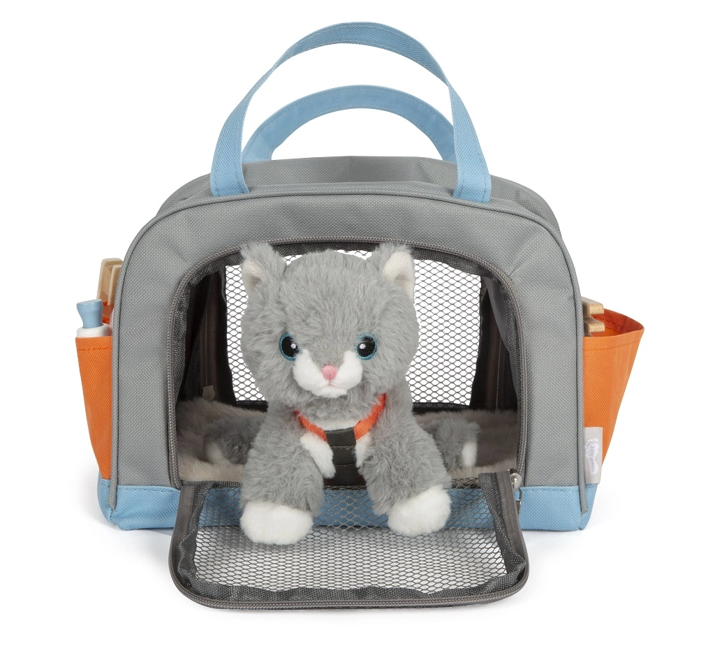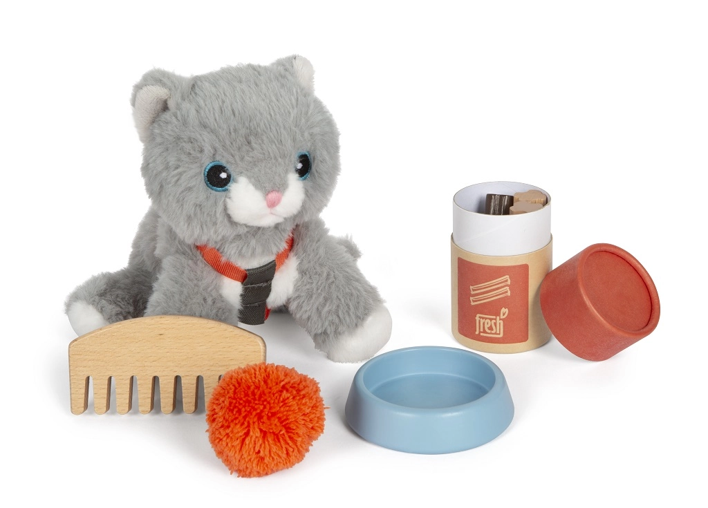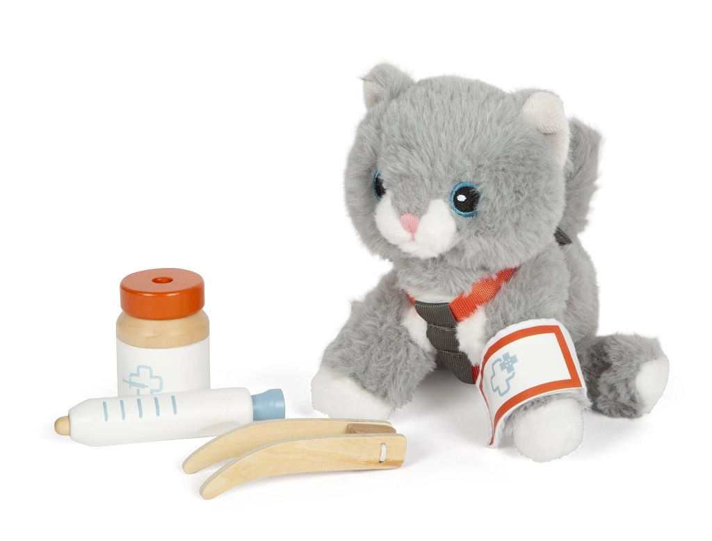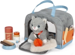Šis gausiai sukomplektuotas rinkinys suteikia viską, ko vaikams reikia rūpintis savo plišiniu pūkuotu lobiu. Katytę su petnešomis galima vežtis patogiame kelioniniame krepšyje su kilimėliu, o prireikus vaikai po ranka turės priemones šėrimui, gydymui ir glostymui. Žaidimas „mažasis veterinaras“ linksmai ugdo empatiją ir atsakomybę.