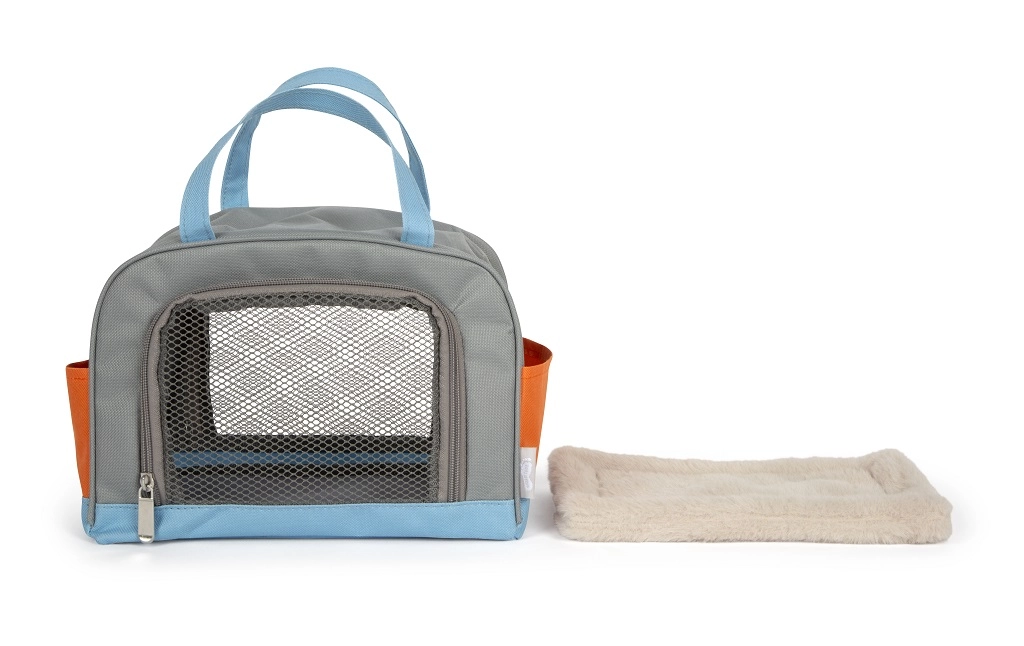 Patvarus ir lengvas krepšys su vėdinimo tinkleliu, kišenėmis ir minkštu kilimėliu leidžia saugiai pasiimti katytę visur su savimi.
