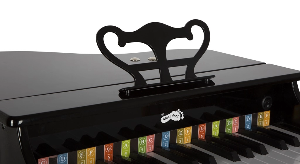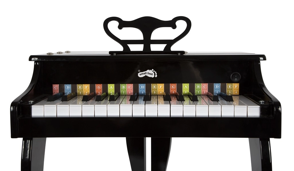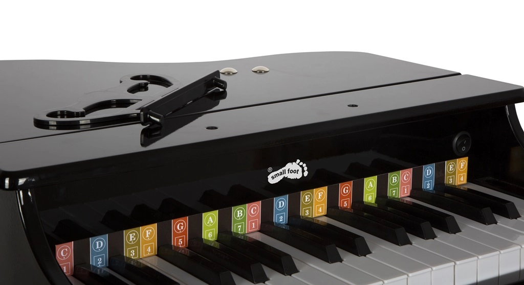 Padovanokite mažajam muzikantui jo pirmą „didelį“ pianiną. Medinis vaikiškas SMALL FOOT koncertinis pianinas išsiskiria realistišku atlikimu su atverčiamu dangčiu ir tvirta konstrukcija. Spalvomis pažymėti klavišai ir dainynas su spalvotomis natomis palengvina pirmuosius žingsnius grojant ir lavina ritmą, susikaupimą bei smulkiąją motoriką.