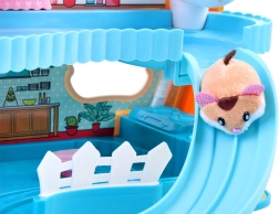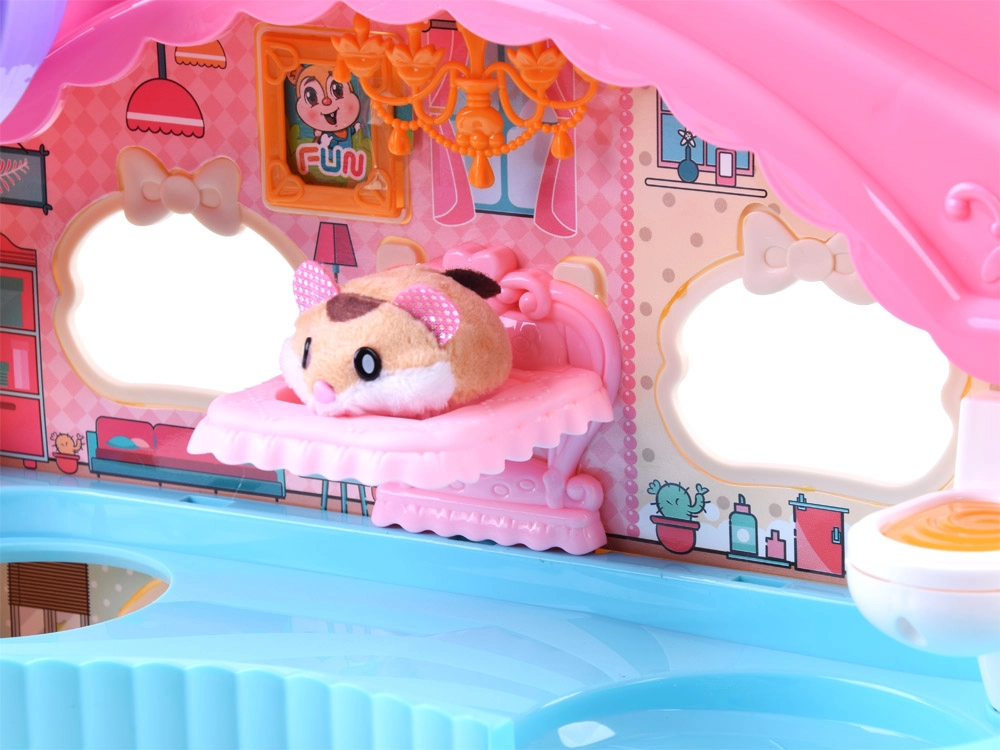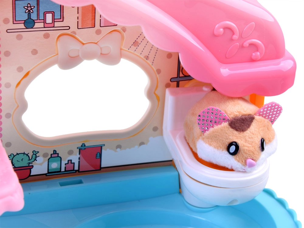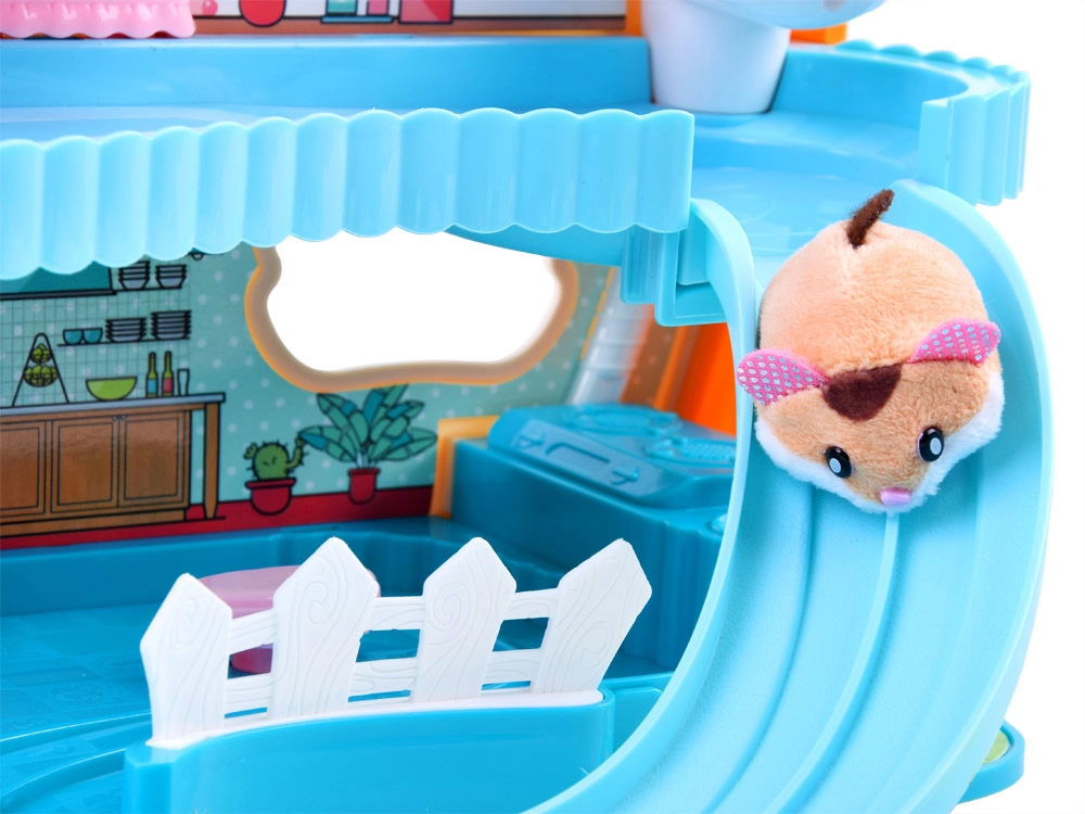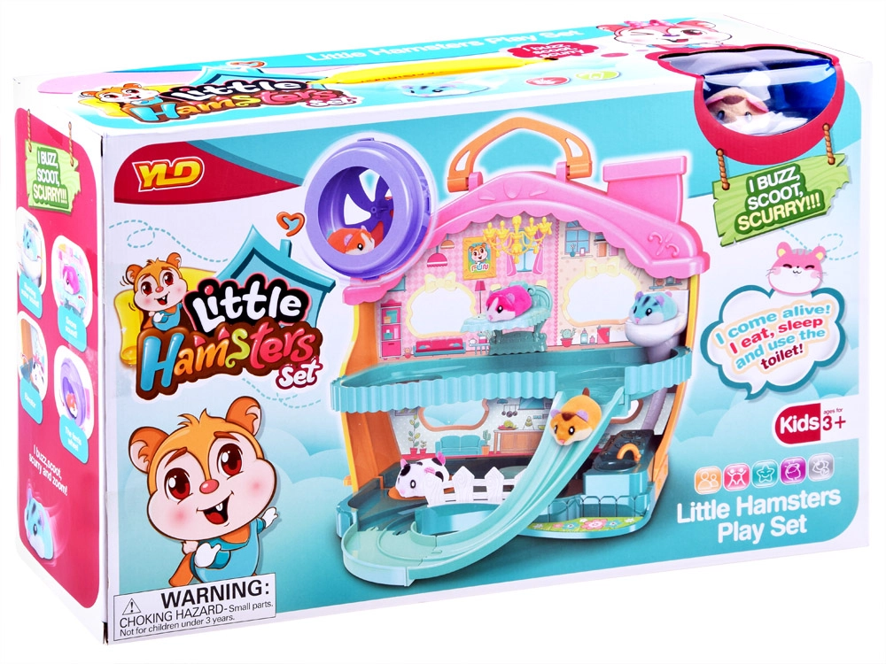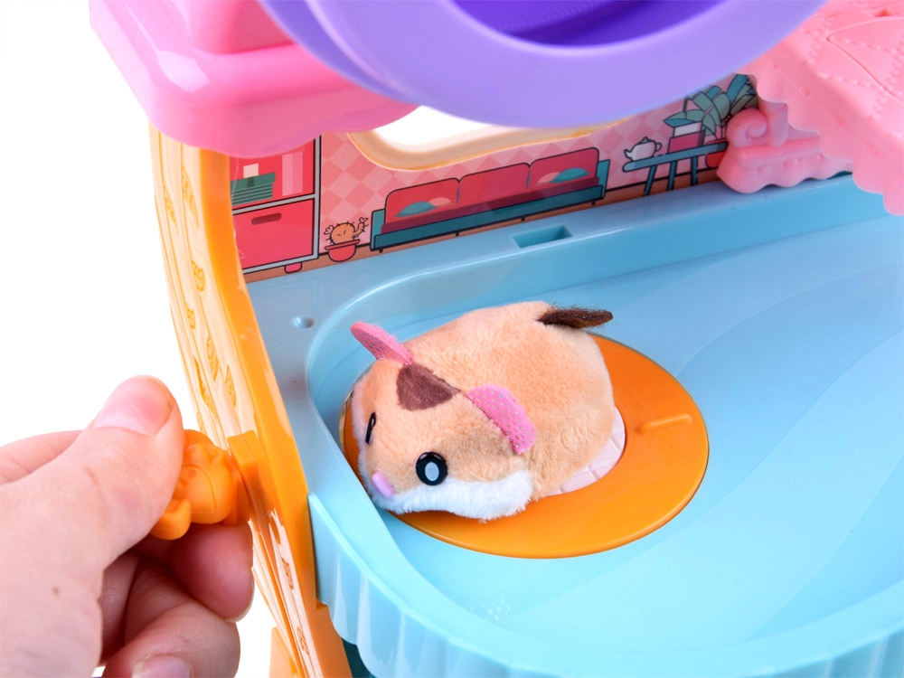 Mielas rinkinys su interaktyviu pliušiniu žiurkėnu ir spalvotu, pramogų kupinu nameliu pradžiugins kiekvieną vaiką. Jame rasite bėgimo ratą, lovelę su žiovulio ir knarkimo garsais, tualetą su nuleidimo garsu, čiuožyklą ir liftą. Žiurkėnas yra švelnus liesti ir paruoštas žaisti iškart išpakavus.