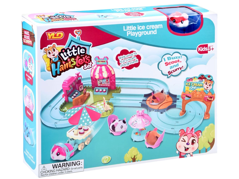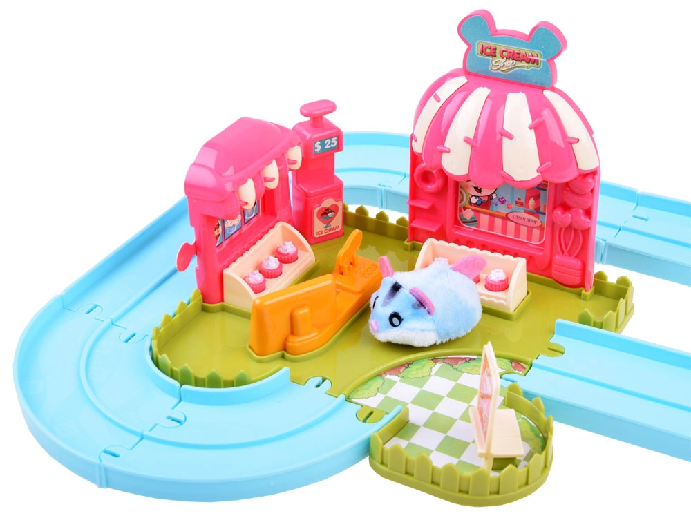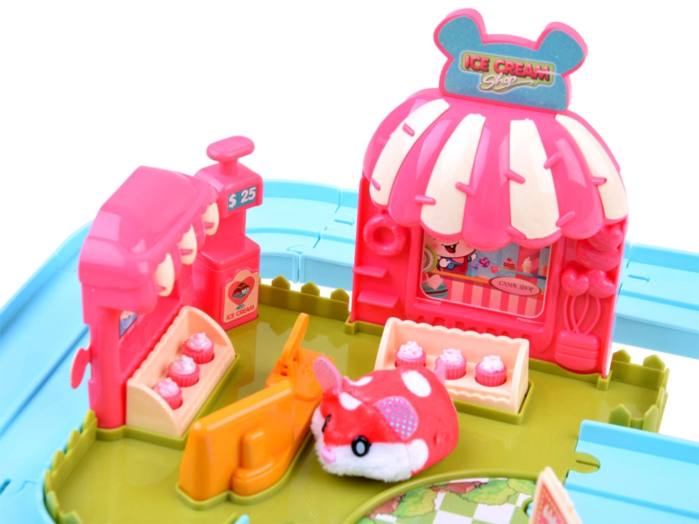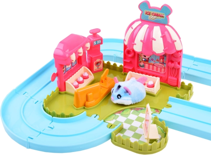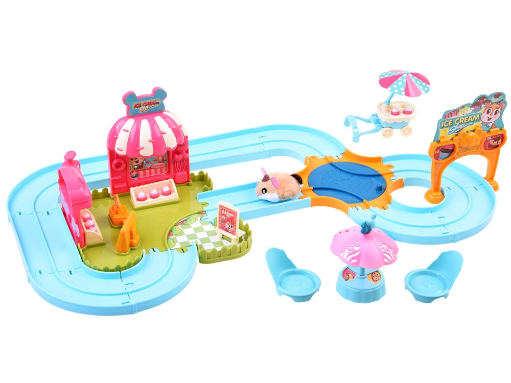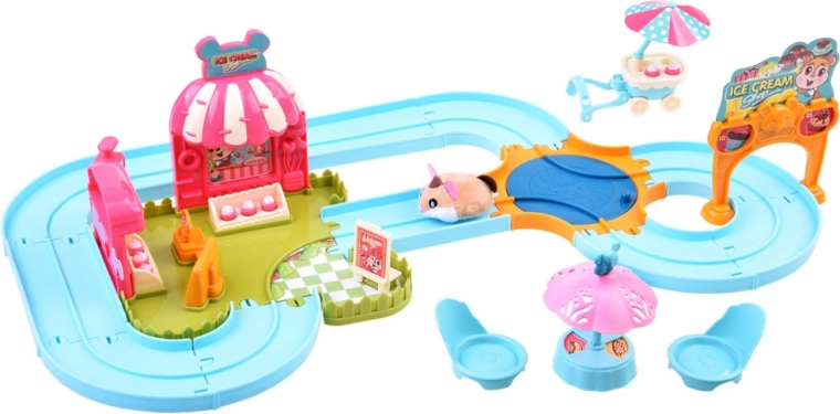 Šis žaidimų rinkinys atveria linksmą ledainės pasaulį su žaviu žiurkėnėliu, kuris turi švelnų kailiuką ir yra pasiruošęs veiksmui iškart po išpakavimo – maitinamas AG13 baterija (yra rinkinyje). Įjungus žiurkėnėlis pajuda ir savarankiškai keičia kryptį, jį galima vesti pridedama lengvai surenkama trasa su perjungikliu. Su prijungtu vežimėliu jis išvežios skanumynus svečiams.