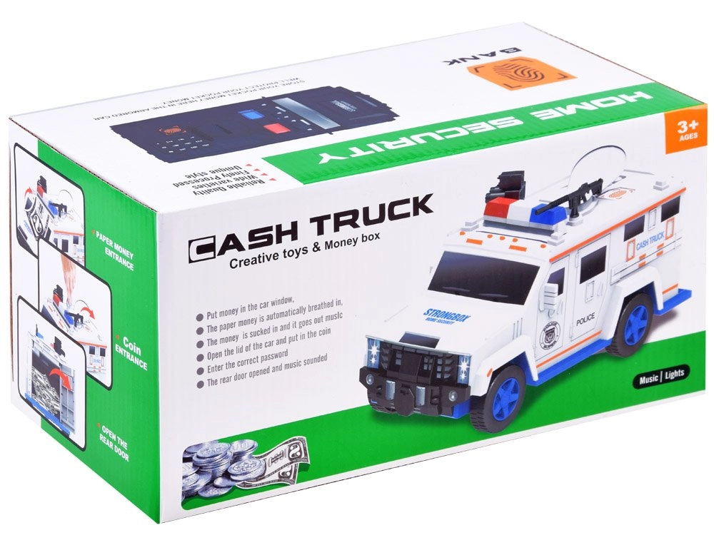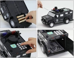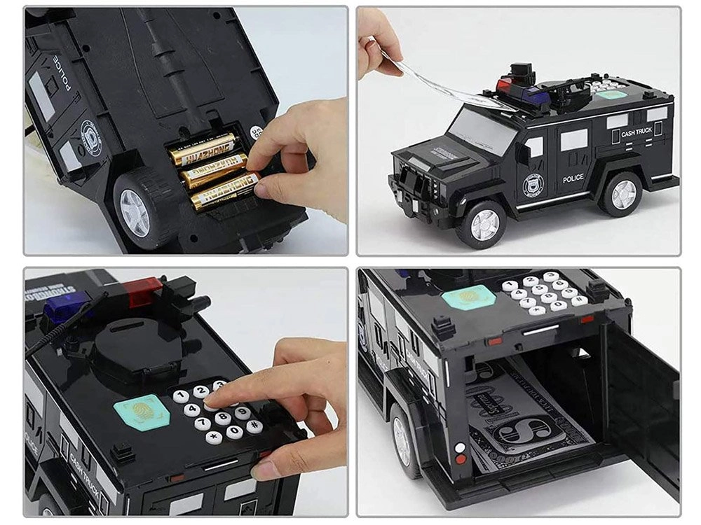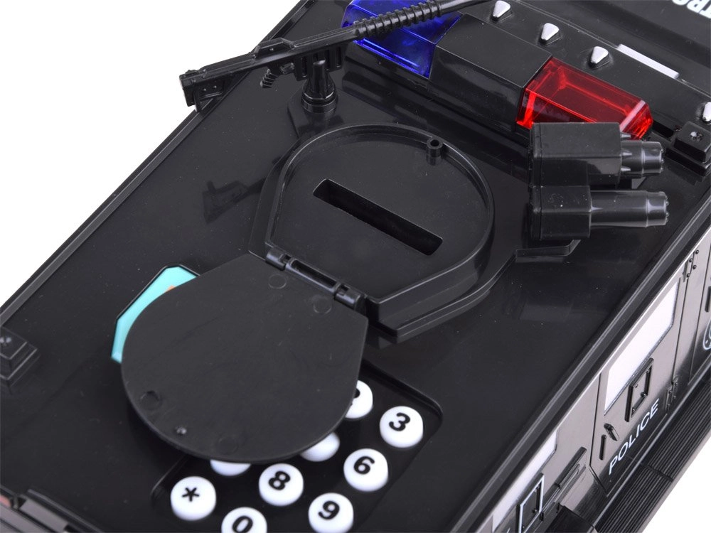 Ši interaktyvi taupyklė policijos automobilio formos saugo vaikų santaupas ir kartu linksmina. Vaikai gali įvesti saugos kodą (numatytasis 0000), patvirtinti jį palietę piršto atspaudo skaitytuvą (simuliacija) ir atidaryti seifo dureles. Banknotai automatiškai įtraukiami per priekinę angą, monetos metamos per viršutinę angą po dangteliu.