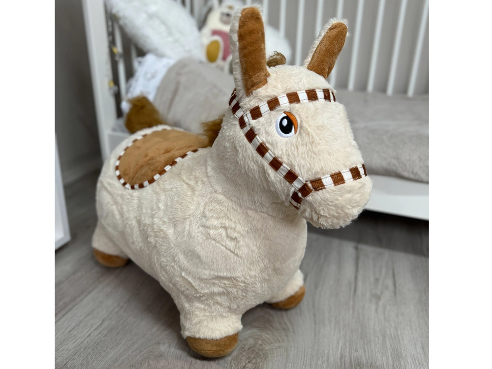 Pliušinis arkliukas – idealus draugas šokinėti, žaisti ir apkabinti. Minkštas, švelnus paviršius malonus liesti, o tvirta šokliuko konstrukcija padeda vaikams lavinti stabilumą, motoriką ir raumenų jėgą. Ausys veikia kaip saugios rankenos, o cypliukas tarp ausų suteikia žaidimui linksmą akcentą.