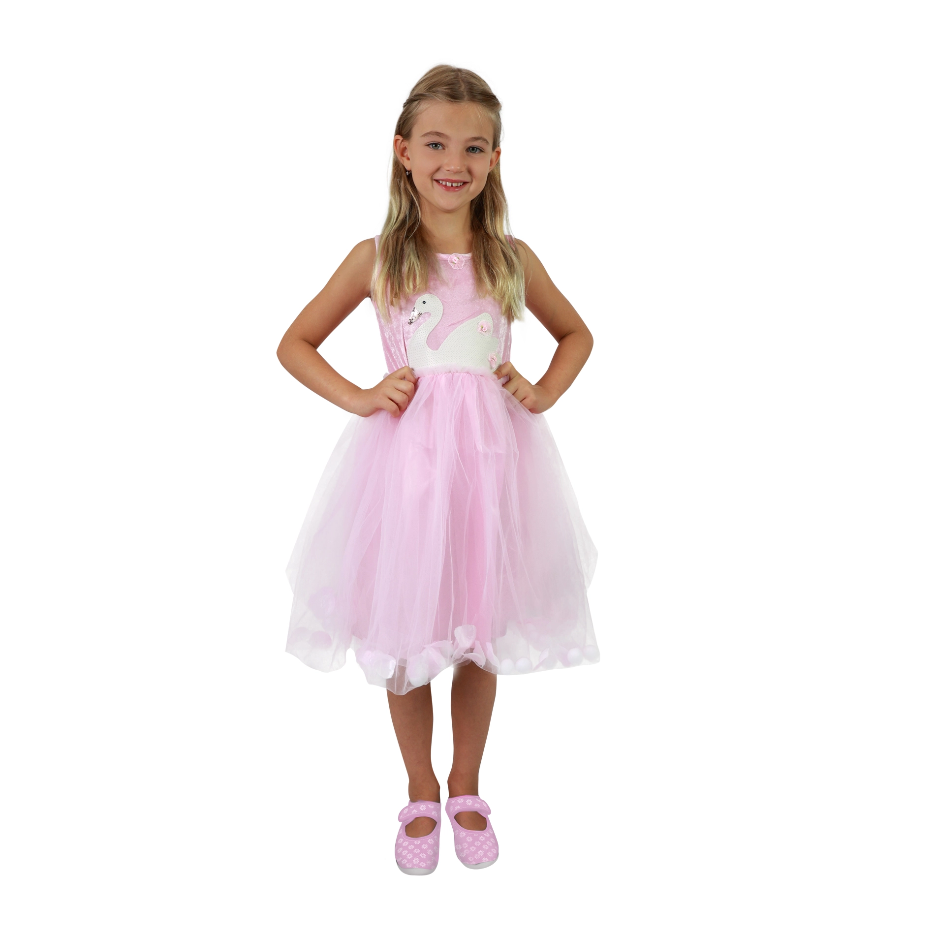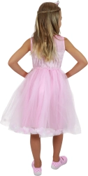 Rožinė gulbės princesės suknelė į kasdienybę įneša magijos. Lengvas tiulio sluoksnis virš satininio pamušalo sukuria pūstą siluetą, o judant gražiai banguoja sijonas. Viršutinė dalis su gulbės motyvu atrodo švelniai ir elegantiškai, todėl jūsų mergaitė pasijus tikra princese.