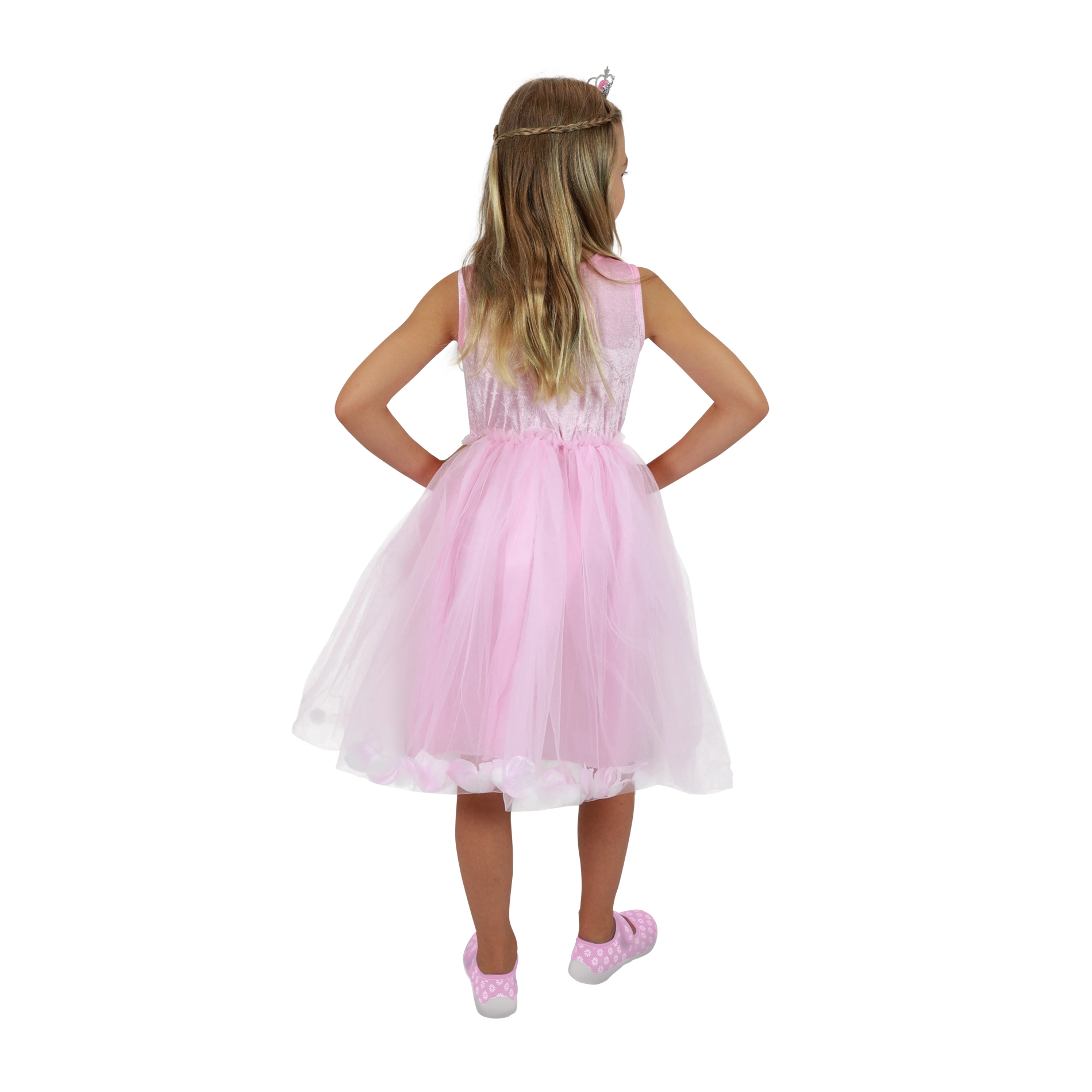 Nustebinkite mažąją damą šiuo rožiniu gulbės princesės kostiumu. Suknelė turi pūstą tiulio sijoną su žiedlapiais ir baltomis karoliukų imitacijomis, suteikiančiomis pasakišką efektą, o liemenį puošia švelni gulbės siuvinėjimo detalė. Idealu karnavalui, vakarėliams ir persirengimo žaidimams, dydis M vaikams 6–8 metų (117–128 cm).
