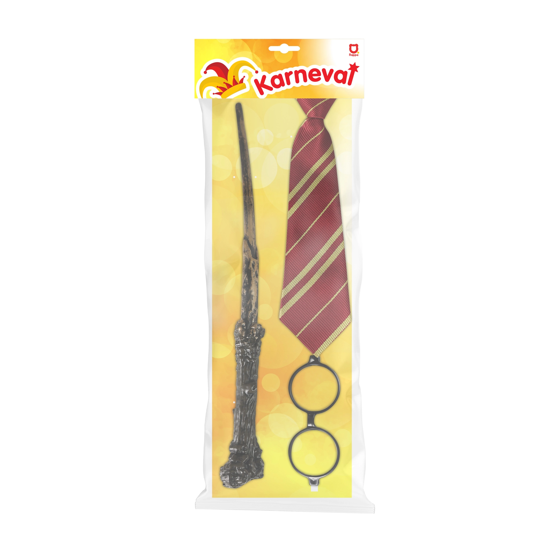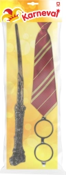 Akimirksniu tapsk burtininku! Ši karnavalinė setas apima plastikinę burtų lazdelę, apvalius akinius ir dryžuotą kaklaraištį – puikūs aksesuarai karnavalui, maskaradui ir Helovinui. Lazdelės ilgis apie 40 cm, puikiai papildo bet kurį raganos ar burtininko kostiumą.