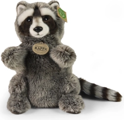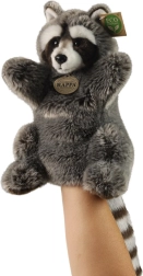 Detaliai išeižytas meškėnas su kauke ir puriu uodegėliu įkvepia fantaziją ir lėlių teatro sceneles.