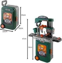 Kruzzel vaikiškas dirbtuvių rinkinys 3-iš-1 suteikia pramogą ir mokymąsi viename komplekte. Šiame rinkinyje yra viskas, ko reikia jūsų vaikui, kad pasijustų tikru mechaniku ar konstruktoriu.