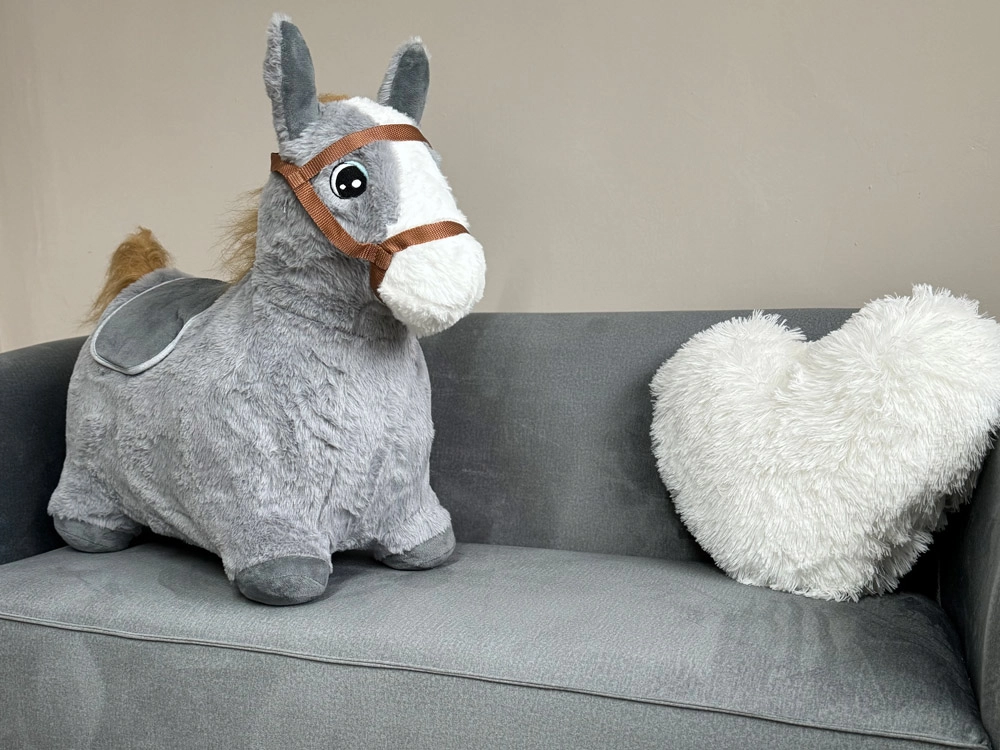 Pliušinis šokinėjantis arkliukas JOKOMISIADA – idealus draugas aktyviam žaidimui namuose ar sode. Minkštas, malonus liesti paviršius kartu su tvirta konstrukcija suteikia vaikams komfortą ir užtikrintumą šokinėjant. Dėl patogių laikiklių-ausių ir smagaus cypliuko tarp jų, vaikai mėgausis valandomis saugaus žaidimo.