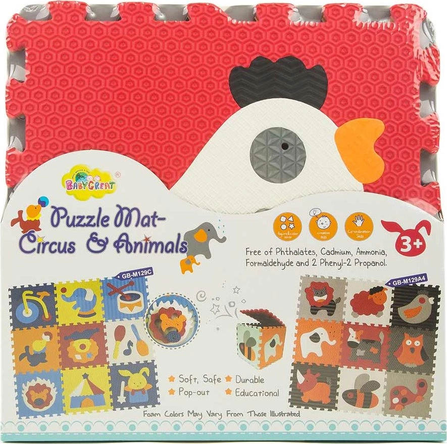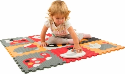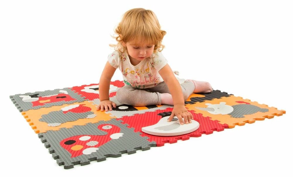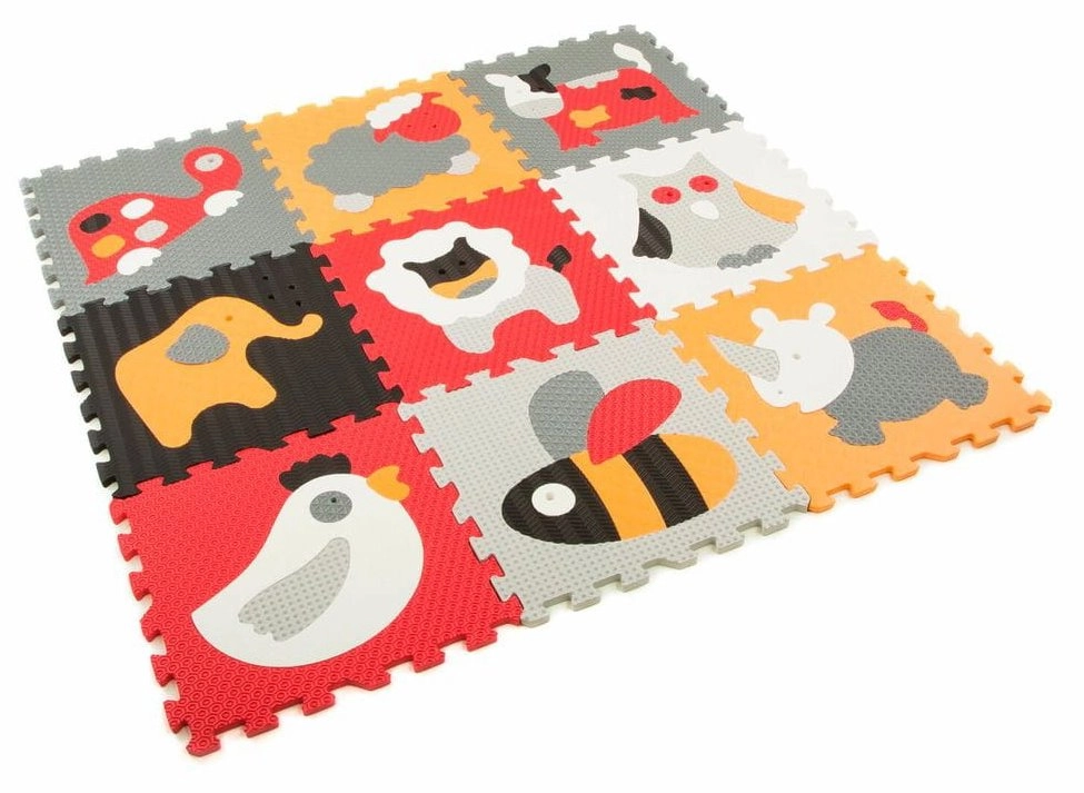 Putų dėlionė su gyvūnų motyvais, derinanti pilką ir raudoną spalvas, puikiai tinka kaip žaidimų kilimėlis vaikų kambariui ar svetainei. Kiekvieną paveikslėlį sudaro penkios iki aštuonių išimamos dalys, tad vaikai lavins smulkiąją motoriką ir loginį mąstymą. Danga yra minkšta, saugi, lengvai prižiūrima ir dėl izoliacinių savybių saugo nuo šaltų grindų.