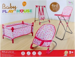 Lėlių rinkinys 4 viename su lovyte, supyne, gultu ir maitinimo kėdute