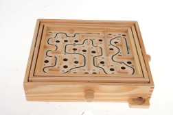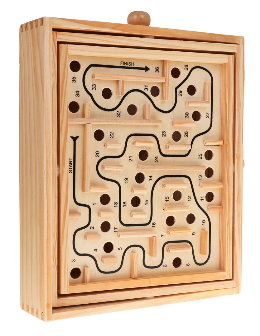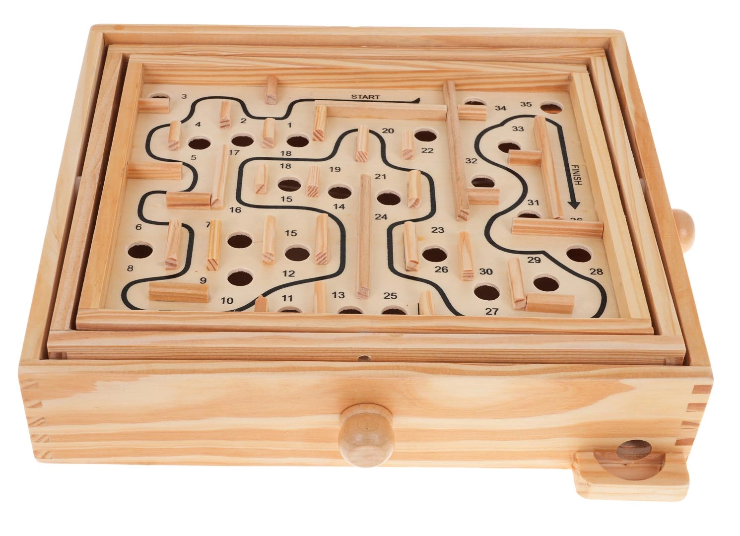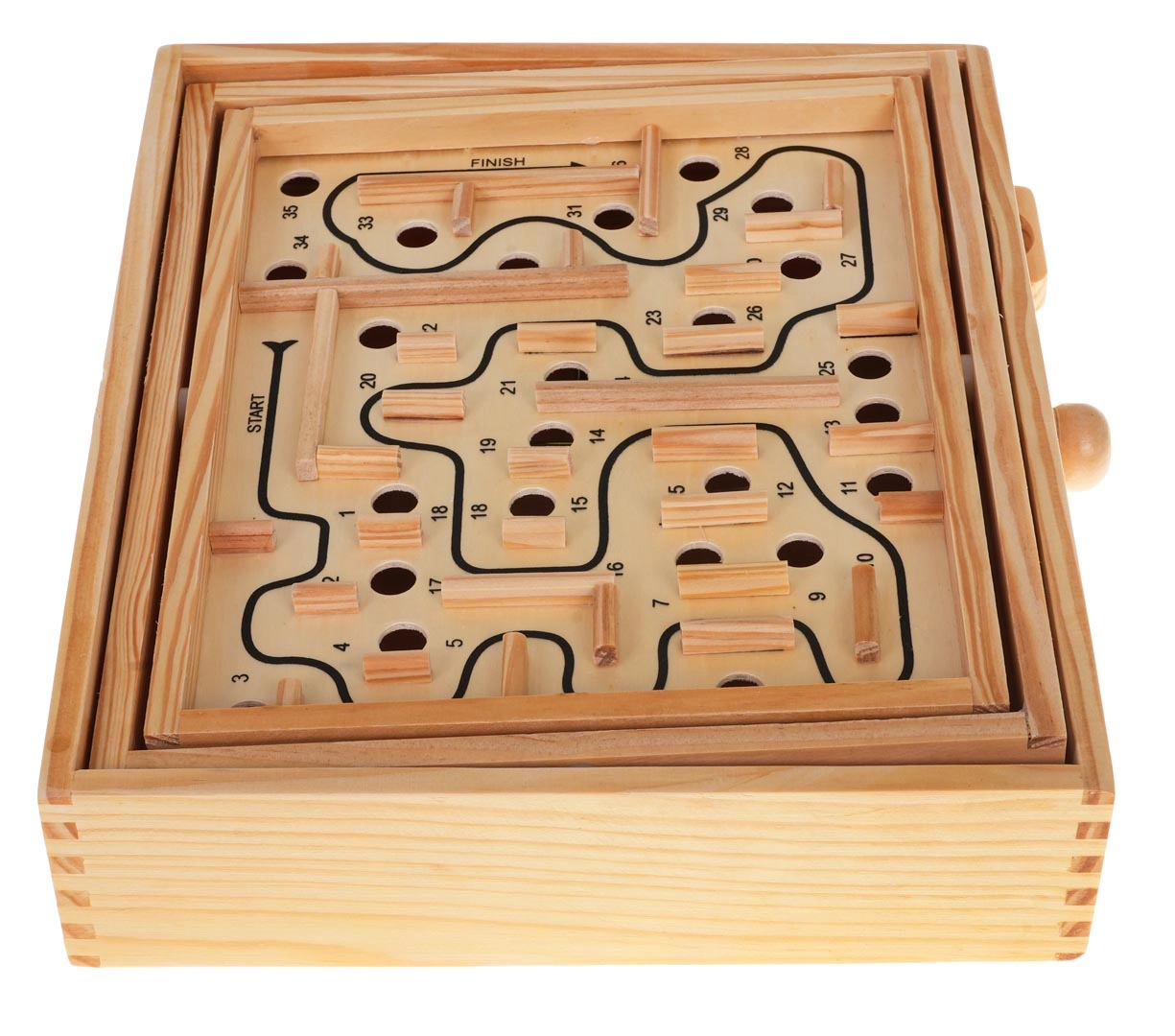 Pasinerkite į pramogų pasaulį su mediniu žaidimu Labirintas, kuris suteikia išskirtinį žaidimo malonumą ir kartu lavina įgūdžius. Šis žaidimas sukurtas taip, kad stimuliuotų susikaupimą ir akių-rankų koordinaciją. Naudodami šoniniuose kraštuose esančius pasukamus ratukus galite lengvai pakreipti žaidimo lentą ir valdyti rutuliuką.