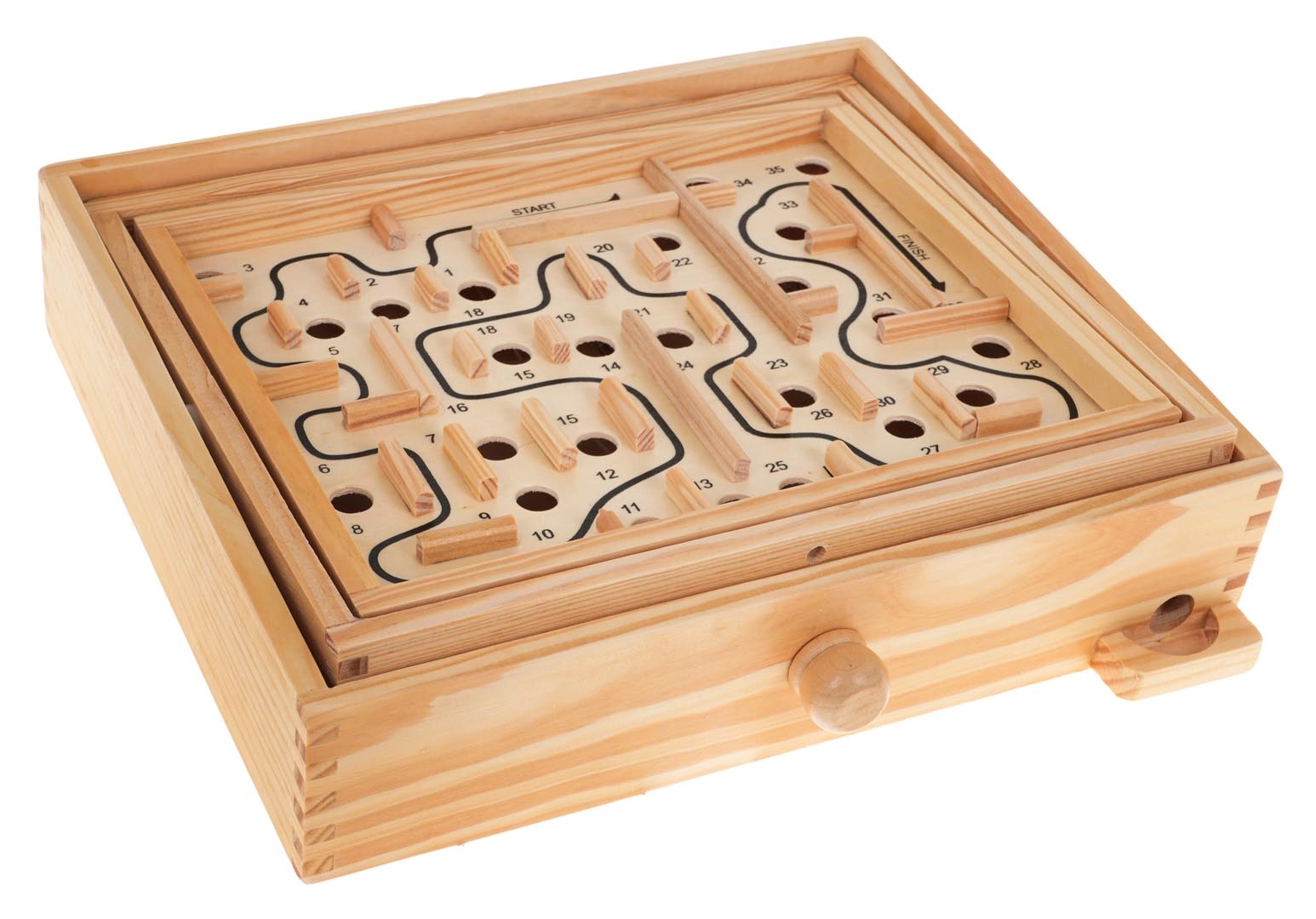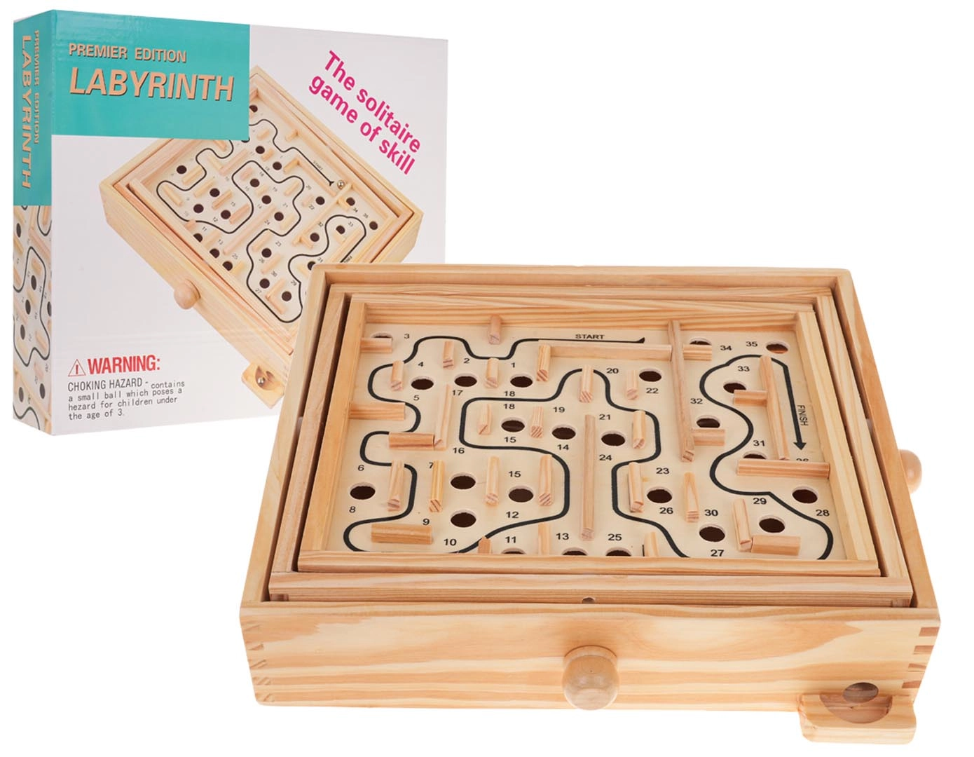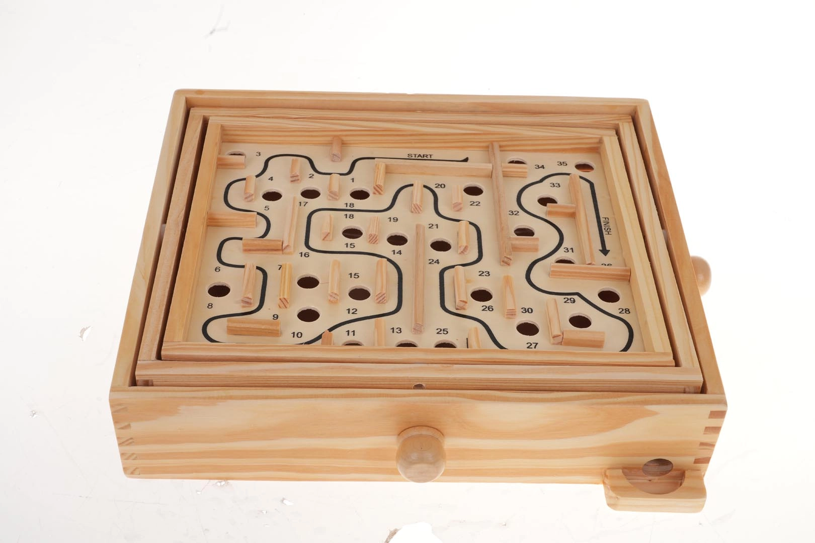 Pasinerkite į pramogų pasaulį su mediniu žaidimu Labirintas, kuris suteikia išskirtinį žaidimo malonumą ir kartu lavina įgūdžius. Šis žaidimas sukurtas taip, kad stimuliuotų susikaupimą ir akių-rankų koordinaciją. Naudodami šoniniuose kraštuose esančius pasukamus ratukus galite lengvai pakreipti žaidimo lentą ir valdyti rutuliuką.