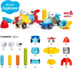 Rinkinys SmartMax Mano pirmieji nuotykių ieškotojai atveria greitą ir džiugią kelionę į konstravimo žaidimų pasaulį. Ryškių spalvų dalys dėl stiprių magnetų saugiai ir lengvai jungiasi, todėl vaikai patirs daug sėkmingų statybos bandymų be nusivylimo.