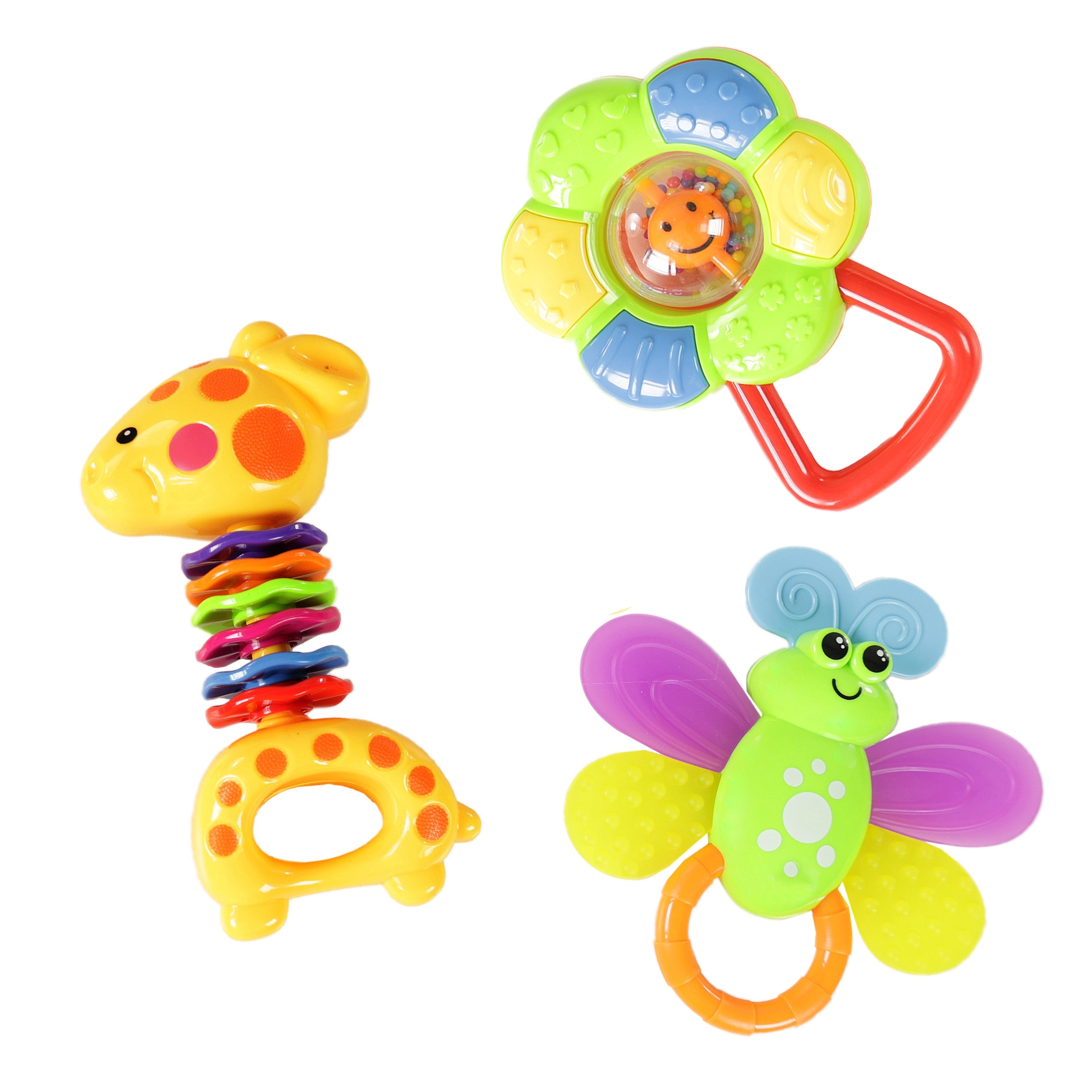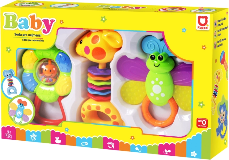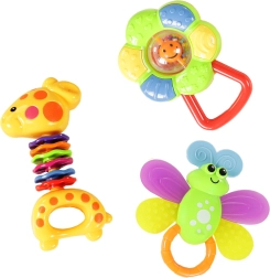 Su šiuo linksmų barškučių rinkiniu pasirūpinsite begalinėmis pramogų valandomis savo kūdikiui. Kiekvienas barškutis kruopščiai sukurtas atsižvelgiant į vaikų saugumą ir patogumą. Ryškios spalvos ir įdomios formos stimuliuoja pojūčius, skatina akių ir rankų koordinacijos vystymąsi bei žadina smalsumą.
