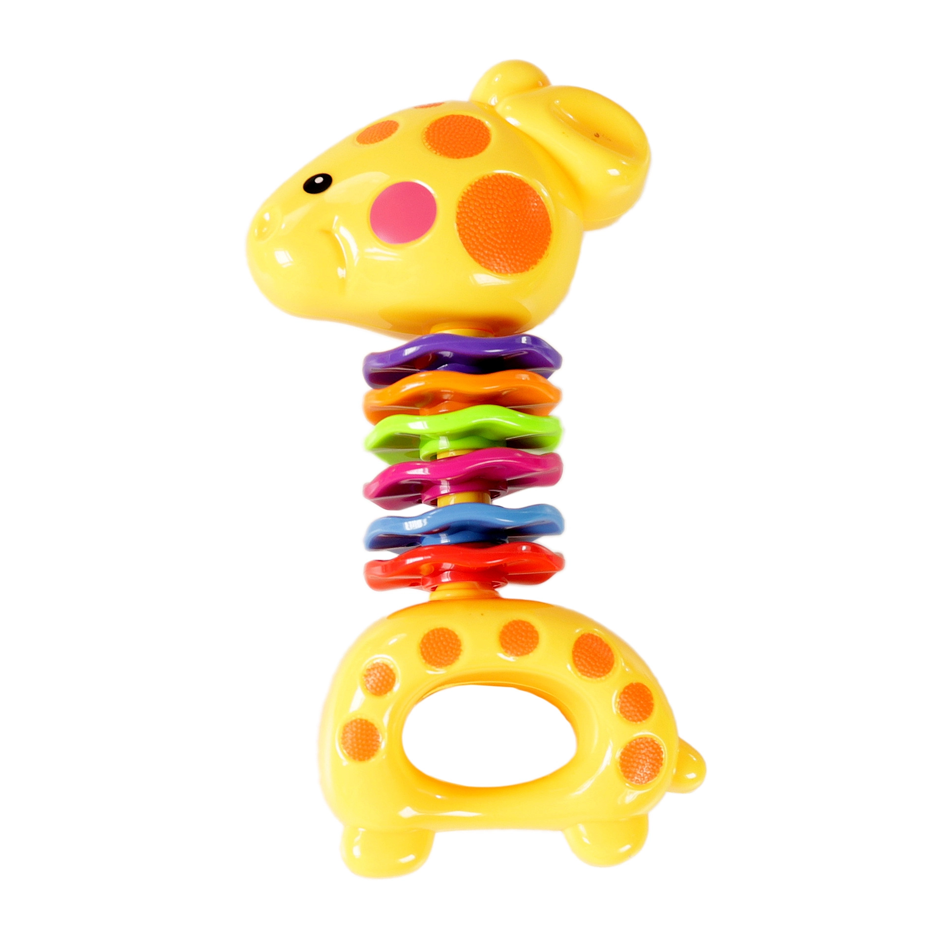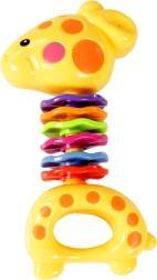 Žirafa sukurta taip, kad patrauktų kiekvieno vaiko dėmesį spalvingais žiedais aplink kaklą. Barškutį lengva sugriebti, jis saugus, todėl teikia džiaugsmo liečiant ir judinant.