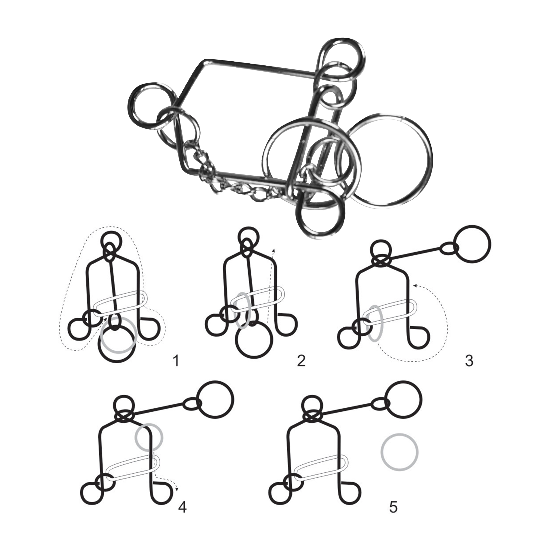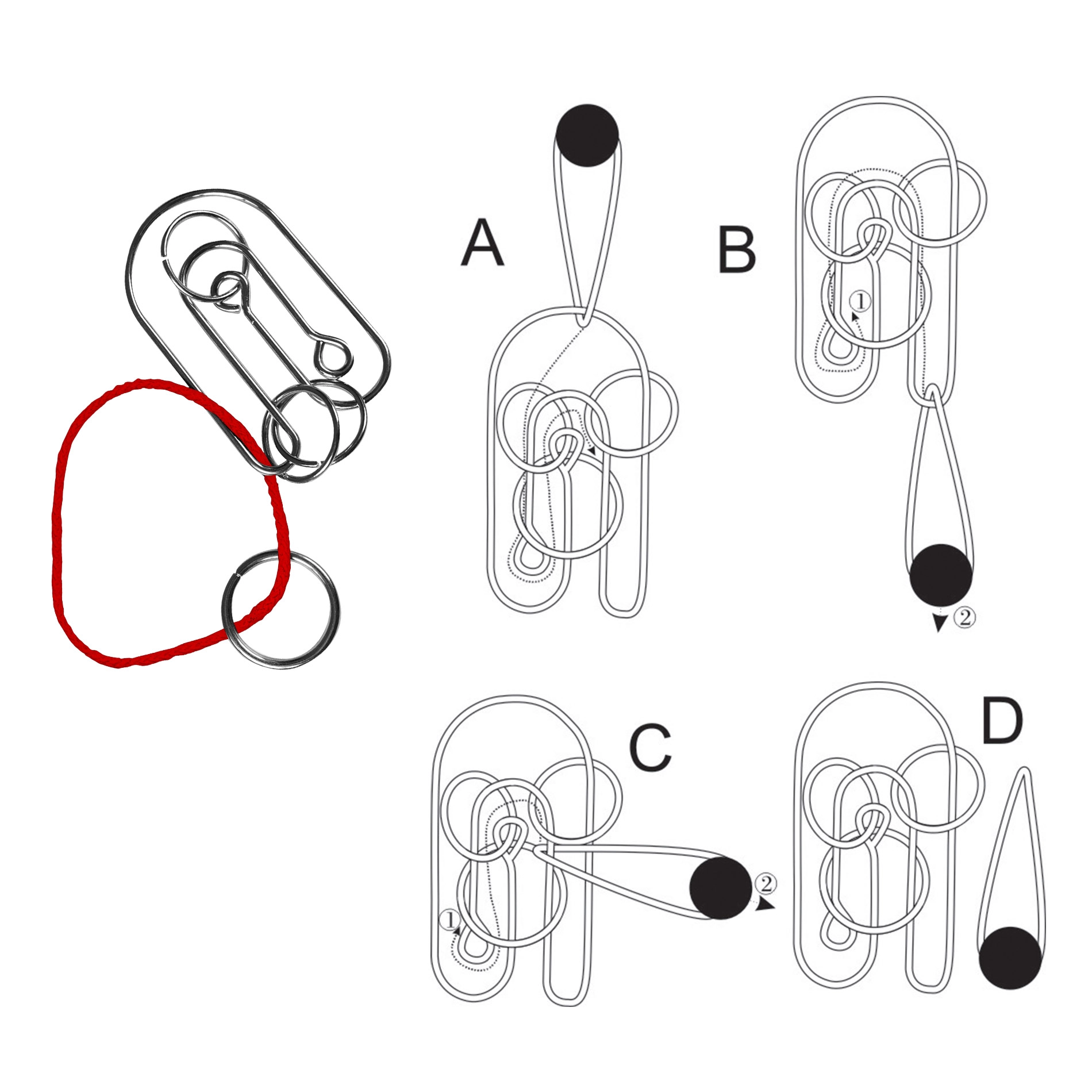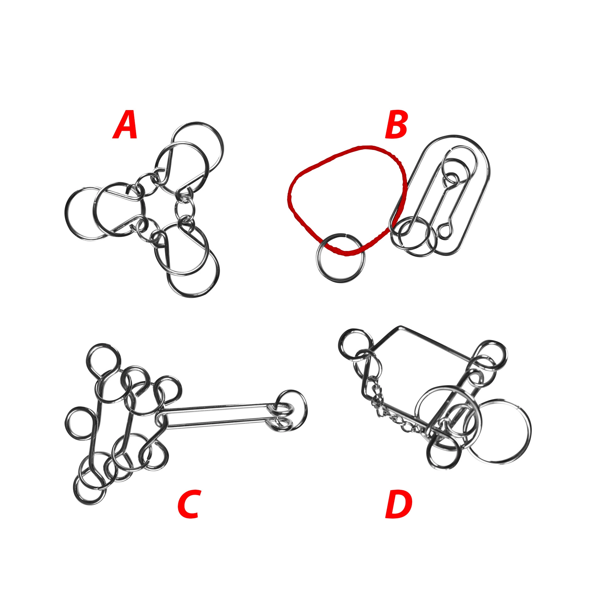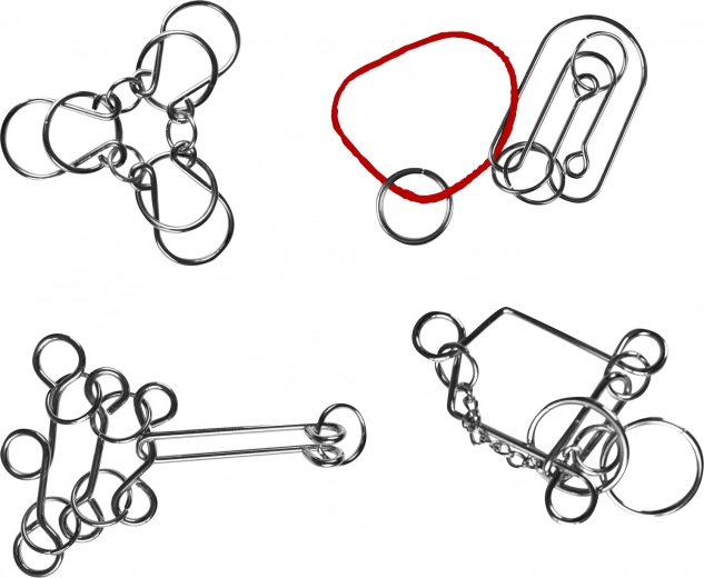 Šiame rinkinyje yra keturi unikalūs metaliniai galvosūkiai, kurie patikrins jūsų loginį mąstymą ir smulkiąją motoriką.