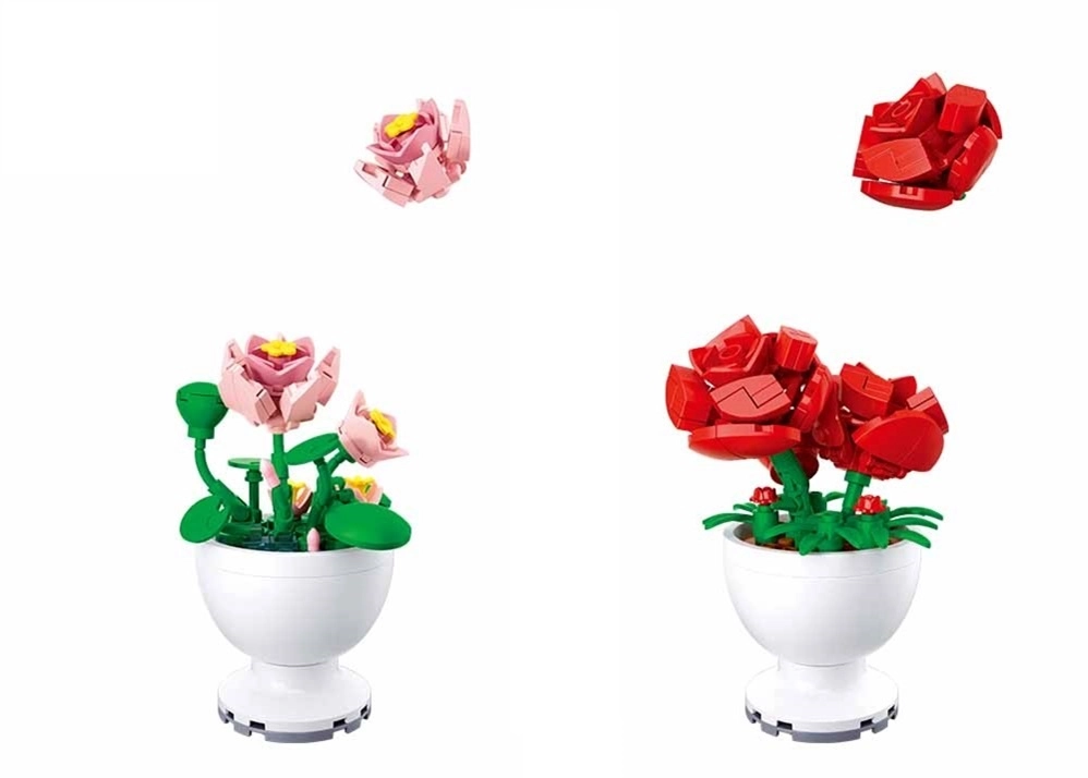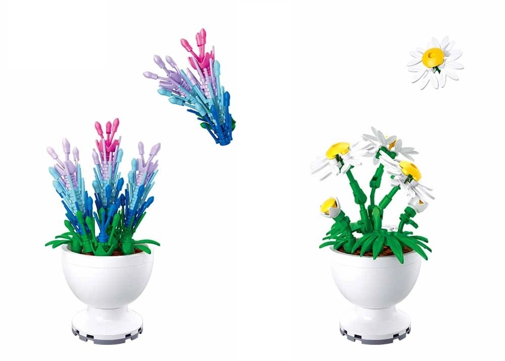 Atraskite novatorišką Sluban konstruktorių, kuris siūlo šešias skirtingas gėlių rūšis, įskaitant rožę, levandą, ramunę, lotosą, bijūną ir tulpę. Kiekviena gėlė patalpinta baltame vazonėlyje, sukuriant žavingą dekoraciją.