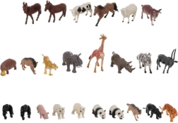 Plati naminių, miško ir laukinių rūšių kolekcija skatina kūrybišką žaidimą ir mokymąsi pavadinimų bei aplinkų, kuriose gyvūnai gyvena.