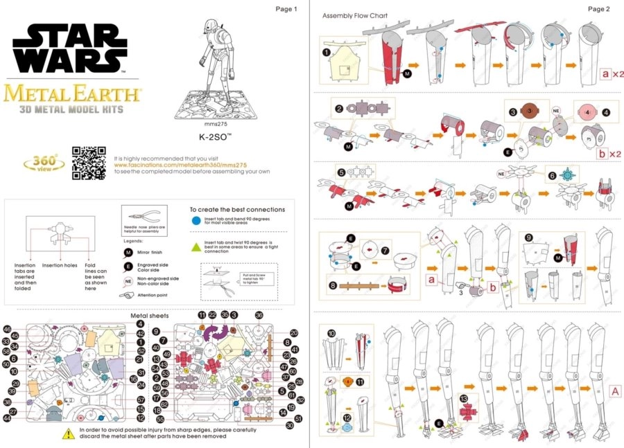 Pastatykite ikoninį droidą K‑2SO iš „Rogue One“ kaip elegantišką metalinį modelį. Iš plonų plieno lakštų išimkite lazeriu graviruotas dalis ir tiksliai sujunkite jas užraktais – be klijų. Rezultatas – realistiška miniatiūra su gausiomis detalėmis, puikiai atrodanti namuose, biure ar kolekcinėje vitrinoje.