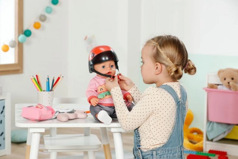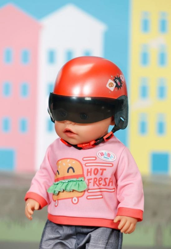 Motorolerio šalmas BABY born lėlėms yra būtinas aksesuaras kiekvienai mažajai motociklininkei. Su šiuo saugomu ir madingu šalmu galite būti tikri, kad jūsų lėlytė atrodys itin stilingai ir bus pasiruošusi bet kokiam nuotykiui.