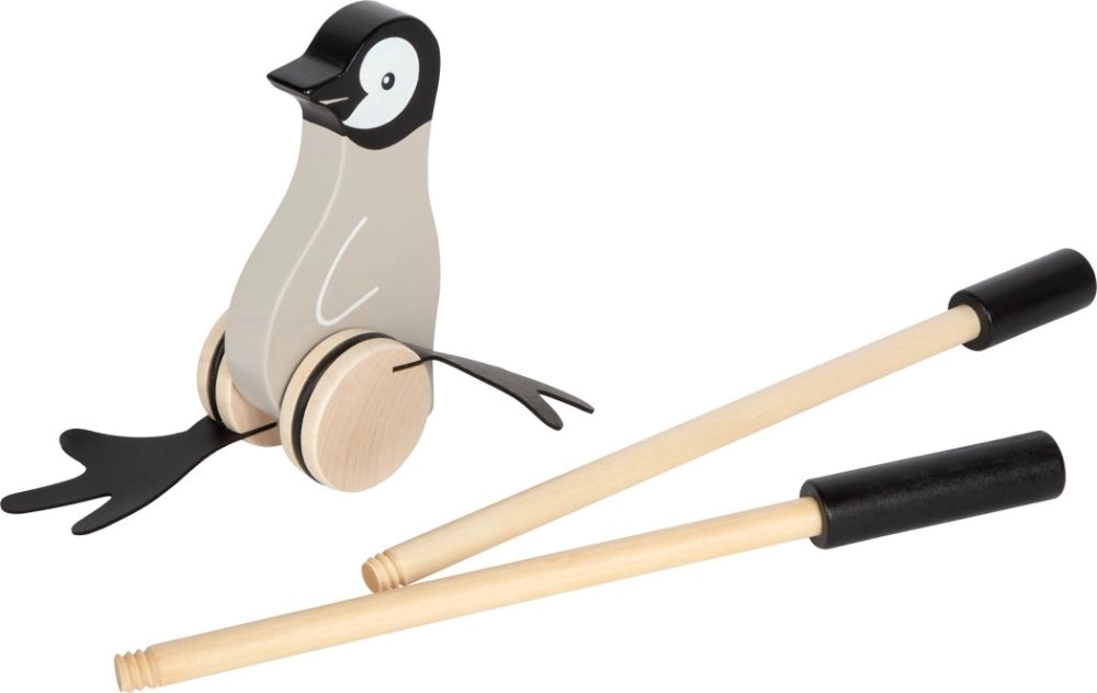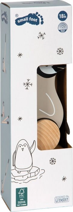Medinis stumdukas pingvinas Small Foot – mielas stumiamas žaislas, kuris skatina 18+ mėn. vaikus judėti ir žengti pirmuosius žingsnius. Dėl reguliuojamo aukščio kotelio, tylių guminiais aptrauktų ratukų ir spragsinčių kojyčių suteikia džiaugsmo einant ir žaidžiant, kartu lavina stambiąją motoriką, koordinaciją ir pusiausvyrą. Pagamintas iš FSC sertifikuotos medienos – saugiam ir tvariam žaidimui namuose ir lauke.