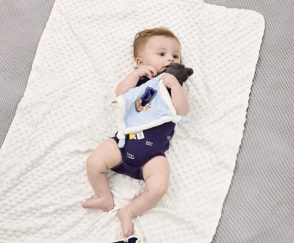 Minkštutė medžiaga, maloni kūdikio odai, ramina ir suteikia saugumo jausmą nuo pat gimimo.