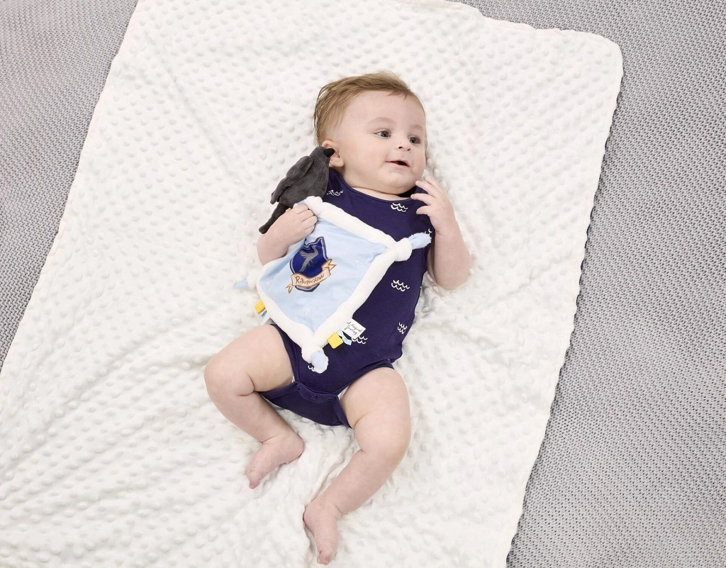 Suteikite kūdikiui ramybę ir saugumą su šiuo švelniu HARRY POTTER migduku Varno Nago spalvomis. Minkštas pliušas, išsiuvinėtas Varno Nago herbas, jutiminės etiketės ir suraišioti kampai skatina pojūčius ir ramina. Tinka nuo gimimo ir yra puiki dovana mažiesiems burtų pasaulio gerbėjams.
