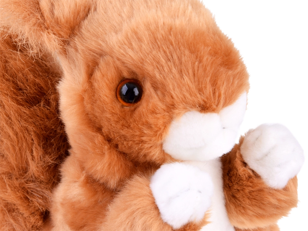 Detalus apdirbimas, ryškios akys ir puri uodega suteikia voverei gyvybingą išraišką. Švelnus pliušas malonus liesti ir saugus vaikams.