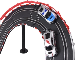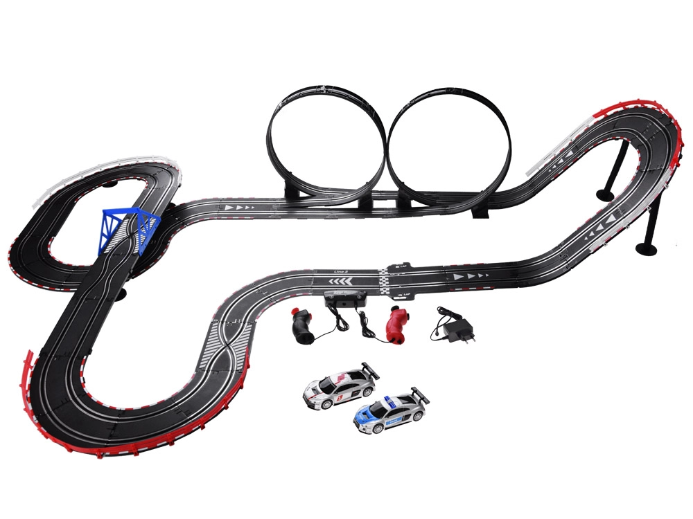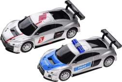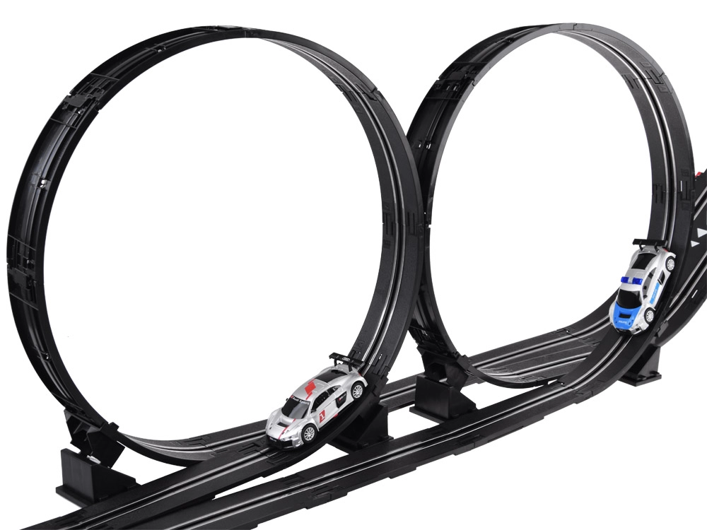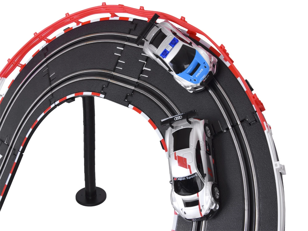 Sukonstruokite savo trasą su tiltais, kilpomis ir dinaminiais aukščio pasikeitimais. Dėl maitinimo iš tinklo ir tikslių valdiklių su „gazo“ funkcija greitį valdysite kiekvieną akimirką. Du detaliai sukurti AUDI lenktyniniai automobiliai laikosi vėžės ir įveikia net sudėtingus trasos elementus.
