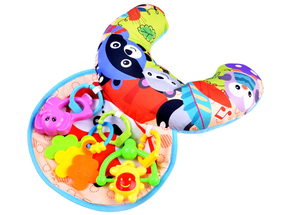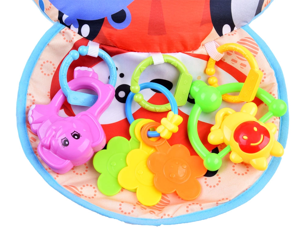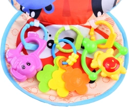 Šlamantis mini kilimėlis ir spalvoti barškučiai lavina regą, klausą bei lytėjimą ir padeda gerinti rankų koordinaciją.