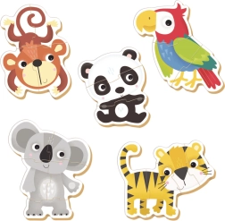 Atraskite linksmą kontūrinę kūdikių dėlionę patiems mažiausiems nuo 24 mėnesių. Rinkinyje yra 5 progresyvios dėlionės su laukinių gyvūnų motyvais (3–5 detalės). Didelės ir tvirtos detalės vaikams lengvai laikomos, padeda lavinti smulkiąją motoriką, dėmesį ir vaizduotę.