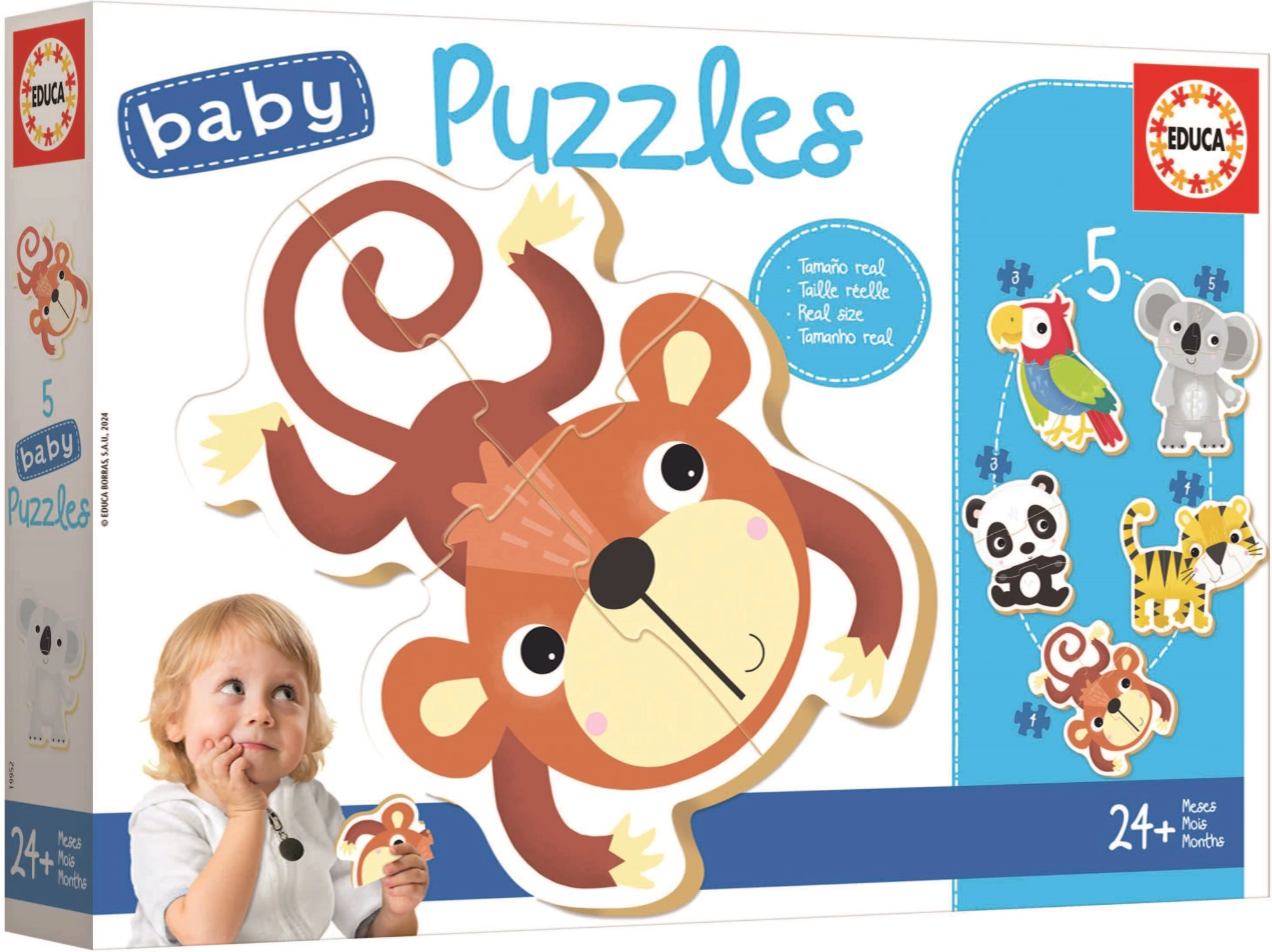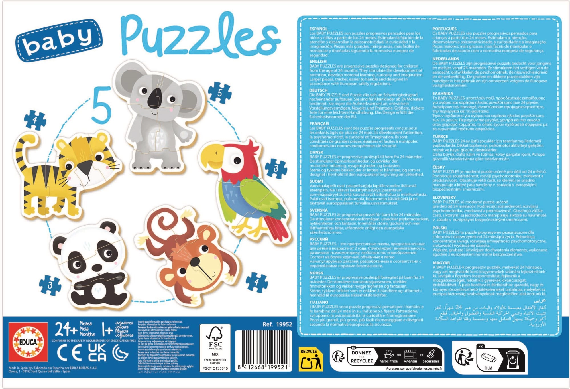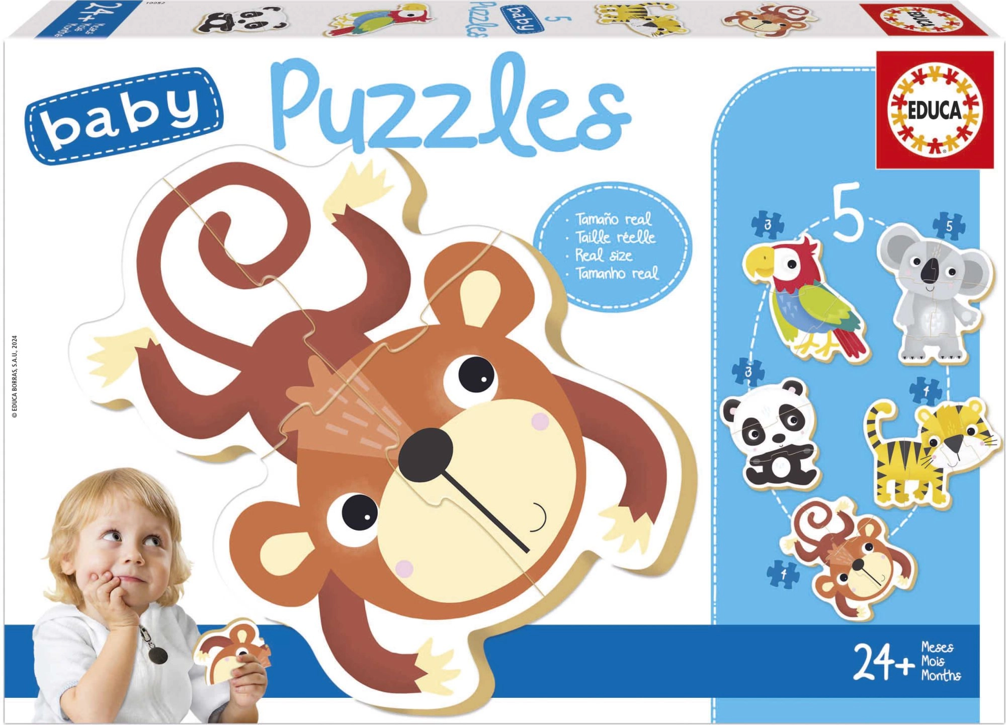 Educa baby dėlionė Laukiniai gyvūnai 5v1 yra specialiai sukurta mažiems vaikams, kurie tik pradeda pažintį su dėlionėmis. Dėl palaipsniui didėjančio detalių skaičiaus (nuo 3 iki 5) vaikai žaisdami įgauna pasitikėjimo ir kantrybės. Didelės ir storos detalės lengvai sugriebiamos ir tiksliai susijungia tarpusavyje.