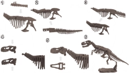 Naudokite plaktuką, kaltelį ir teptuką, atsargiai atidenginėkite turinį ir atraskite spalvotus mineralus bei T‑REXO skeletą. Tuomet skeletą surinksite į dekoratyvų modelį.