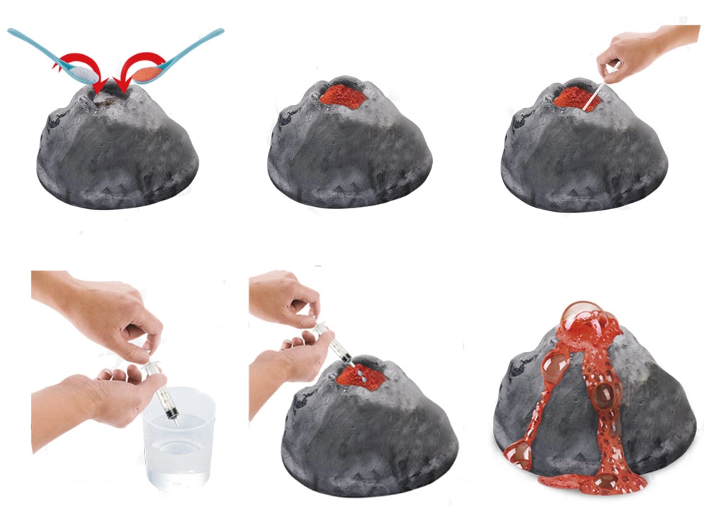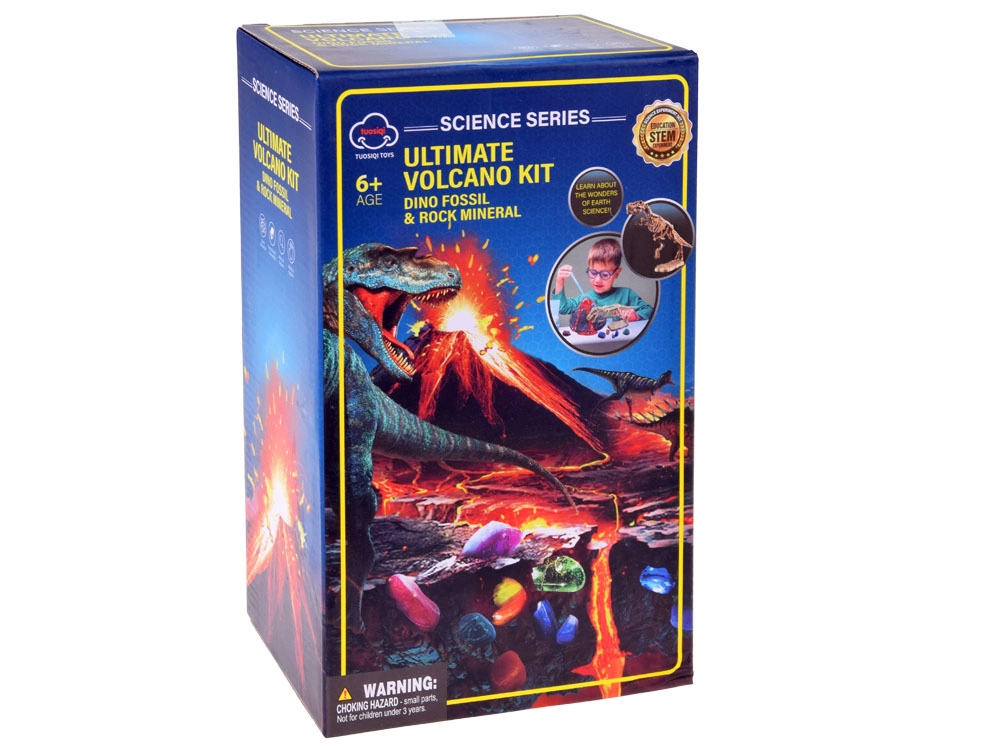 Šis edukacinis rinkinys suteikia dvigubą pramogą: pirmiausia pastatysite ir paleisite savo ugnikalnį su įspūdingu išsiveržimu, o tuomet imsitės kasinėjimų ir atrasite paslėptus lobius. Rinkinys sukurtas taip, kad būtų aiškus ir saugus vaikams, kartu skatinantis domėjimąsi gamtos mokslais, geologija ir paleontologija.