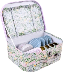 Dekoratyvinis lagaminėlis su rankena skirtas paprastam laikymui ir viso rinkinio nešiojimui – idealu kelionėms ir svečiavimuisi.