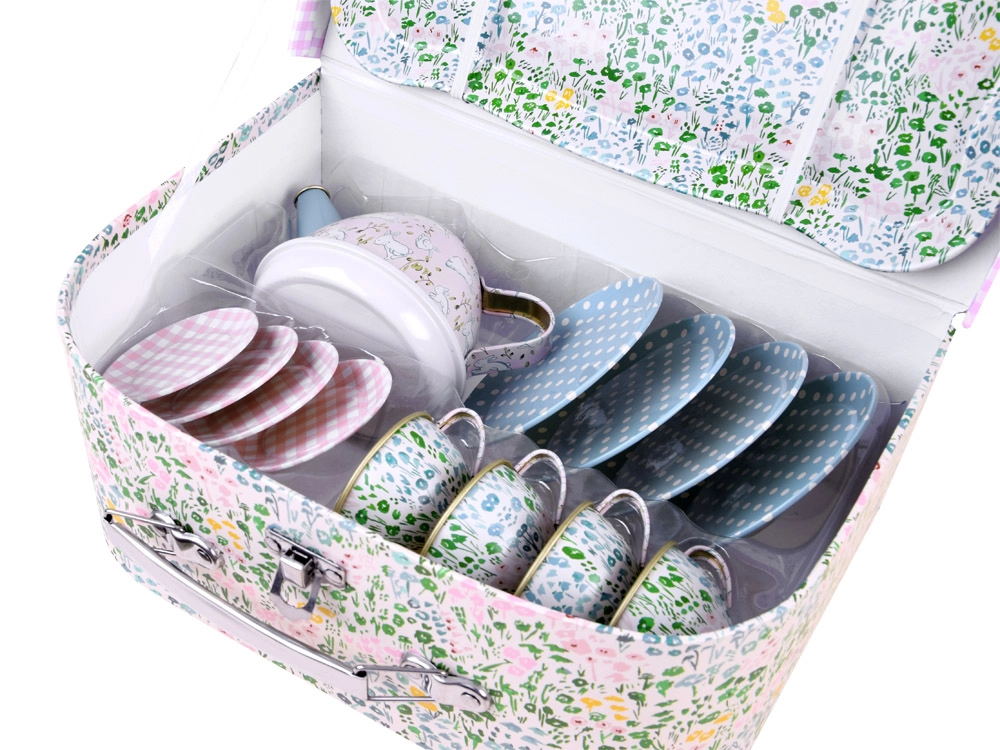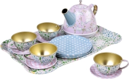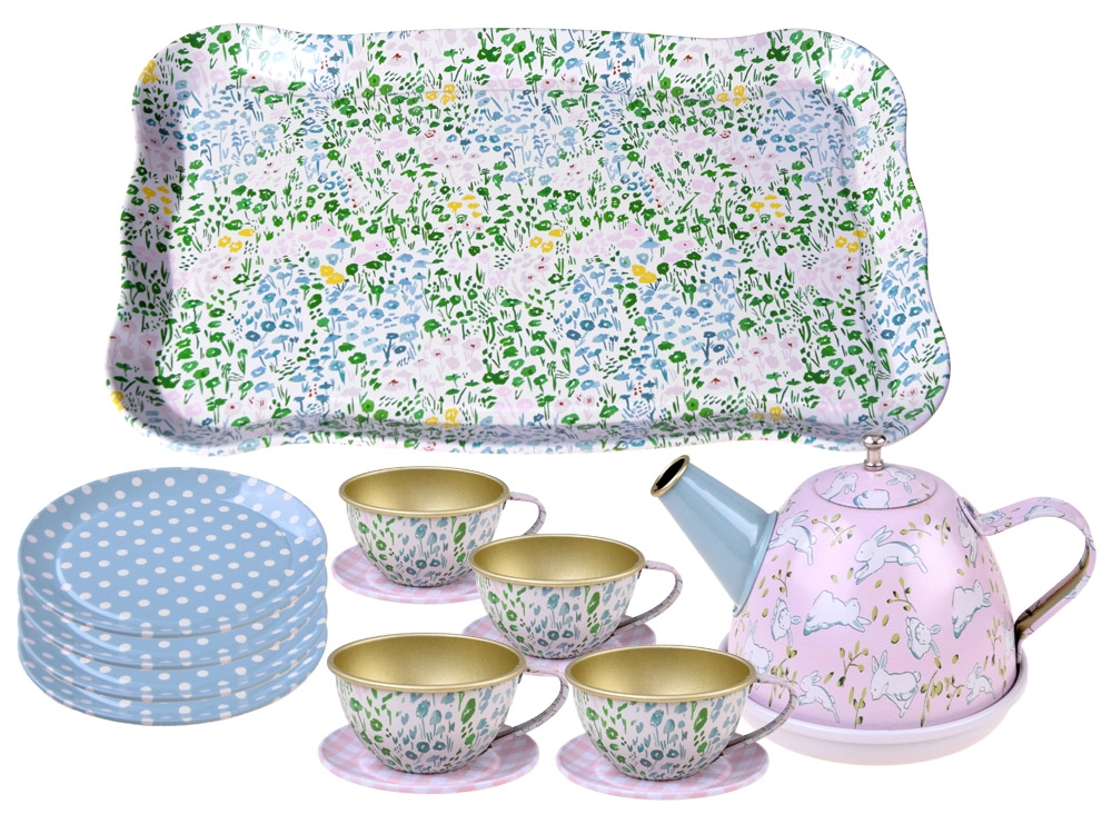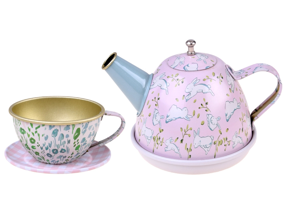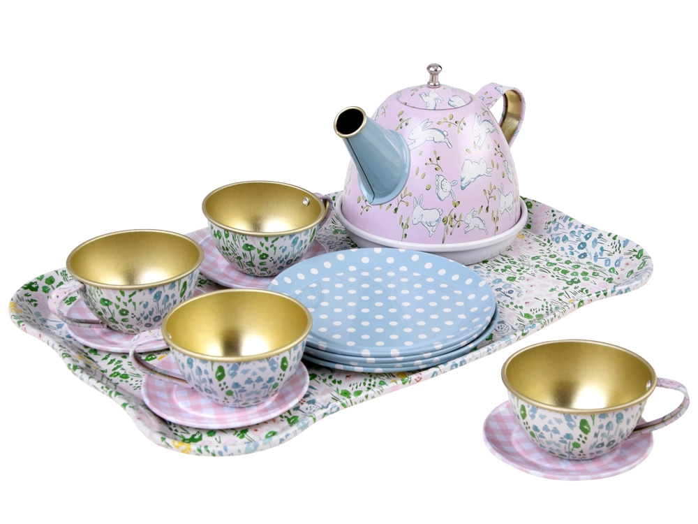 Šis stilingas vaikiškas arbatos rinkinys skatina vaizduotę, socialinius įgūdžius ir stalo etiketo pagrindus. Dėl metalinės konstrukcijos indai yra lengvi, patvarūs ir lengvai prižiūrimi. Spalvingi raštai su mielais motyvais suteikia kiekvienam arbatos pasisėdėjimui žaismingą nuotaiką.