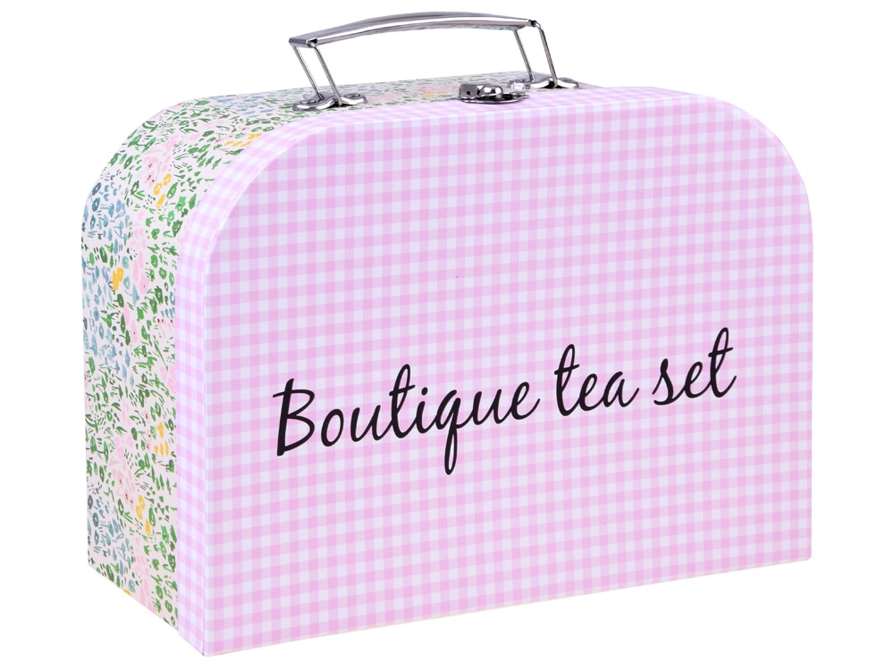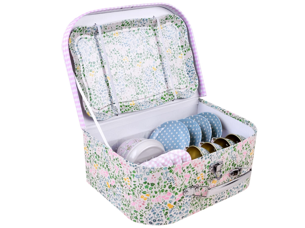 Žavingas vaikiškas arbatos rinkinys patogiame lagaminėlyje suteikia valandų kūrybiško žaidimo ir vaidmeninių veiklų. Lengvi ir patvarūs metalinių indų elementai saugiai imituoja tikrą servisą – idealiai tinka arbatos popietėms su lėlėmis ir pliušiniais žaislais. Rinkinyje yra arbatinukas, padėklas, 4 puodeliai su lėkštutėmis ir 4 lėkštutės, todėl vaikai gali mėgautis bendru serviravimu kaip suaugusieji.