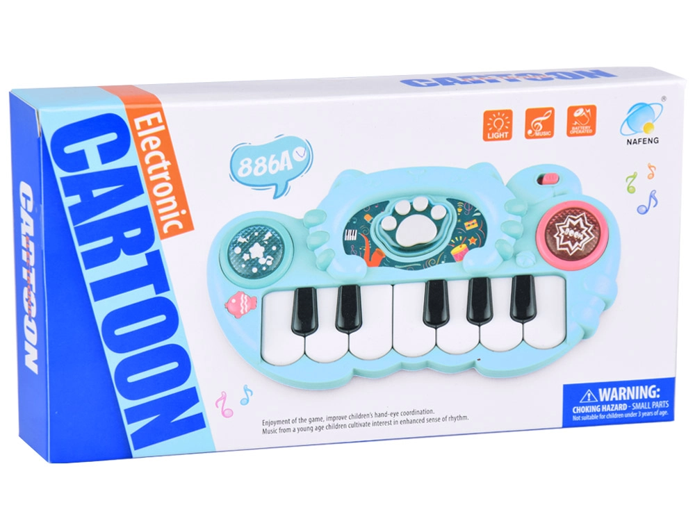 Dėl kelių žaidimo režimų vaikai gali perjungti tarp mušamųjų ir lėkščių garsų, trumpų linksmų melodijų ir groti pagrindinius gamos tonus juodais-baltais klavišais. Pianinukas lavina klausą, regą ir smulkiąją motoriką – idealu pirmajam muzikinės kelionės žingsniui.