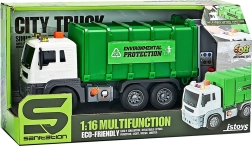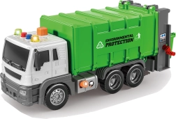 Realistiškas vaikiškas šiukšliavežis masteliu 1:16 užtikrina valandas pramogų ir mokymosi. Dėl frikcinės pavaros, garso efektų ir funkcinės kėbulo dalies vaikai lengvai supras atliekų rūšiavimą. Kokybiškas apdirbimas, atidaroma antstato dalis ir du šiukšlių kibirai rinkinyje garantuoja įvairiapusį žaidimą ir vaizduotės lavinimą.