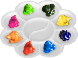 Gėlės formos plastikinė paletė palengvina spalvų atskyrimą ir maišymą, palaiko tvarką darbo metu ir taupo laiką.