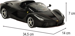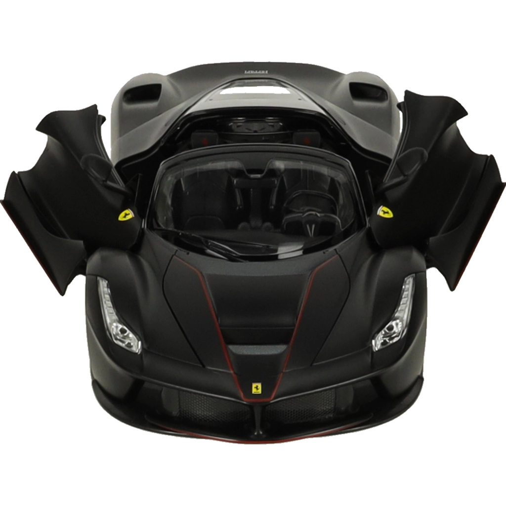 Šis tikroviškas FERRARI LaFerrari Aperta modelis džiugina preciziškomis kėbulo detalėmis, sportiniais ratais ir autentiškomis proporcijomis. Juodas atlikimas su prekės ženklo emblemos ženkleliais pabrėžia supersporto automobilio išskirtinę išvaizdą.