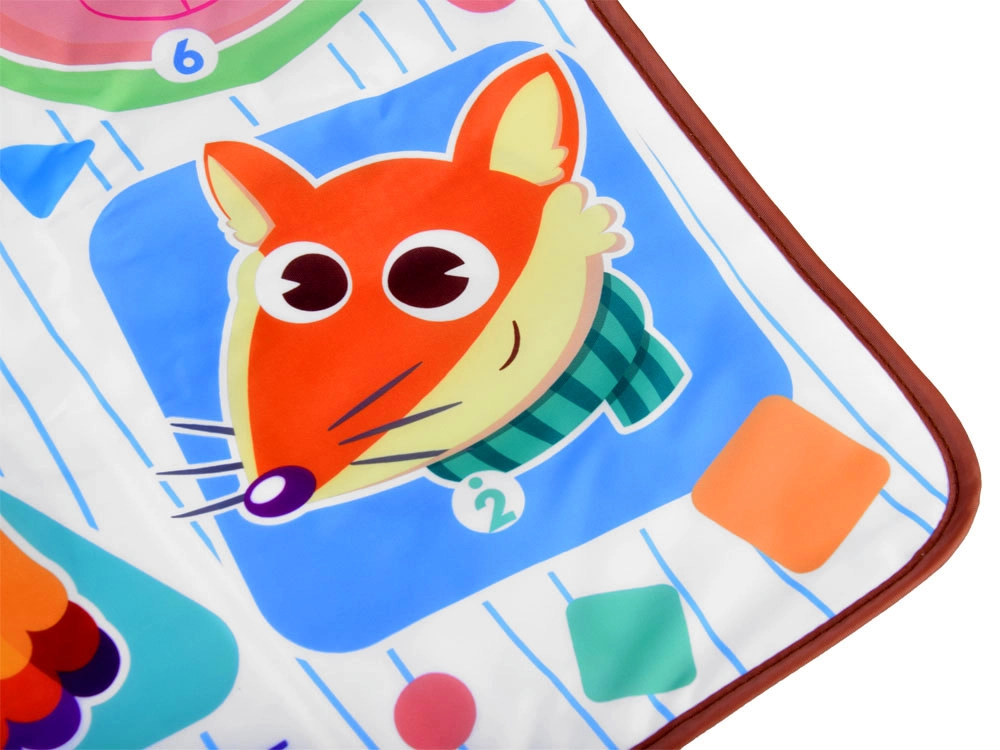 Minkštas kilimėlis su skaičiais ir gyvūnais skatina vaikų fizinį aktyvumą, ritmo pojūtį ir kūrybiškumą. Muzikinis interaktyvus kilimėlis puikiai tinka vaikams, kurie mėgsta šokti ir groti melodijas. Padovanokite savo vaikams šį nuostabų žaislų centrą, pilną muzikos ir judesio!