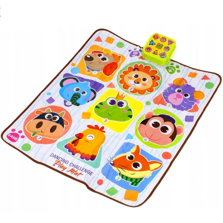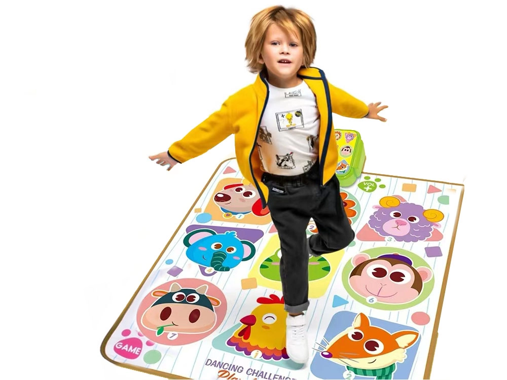 Jūsų vaikas puikiai praleis laiką su šiuo interaktyviu šokių kilimėliu, kuris siūlo kelis žaidimo lygius su spalvingais gyvūnėlių raštais. Kiekvienas žaidėjas turi dėti rankas arba kojas ant apšviestų elementų skydelyje su įvairiais gyvūnais.
