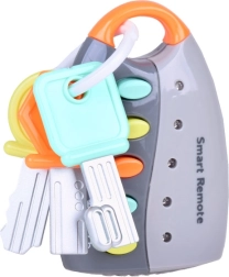 Mielas raktų rinkinys su pakabuku – nuotolinio valdymo pulteliu – yra saugus žaislas patiems mažiausiems. Jis siūlo melodijas, realistiškus automobilio garsus (skambutis, garsinis signalas, užvedimas, užrakinimas/atrakinimas) ir mirksinčias švieseles. Patvarus plastikas ir baterijos rinkinyje = pramoga iš karto!